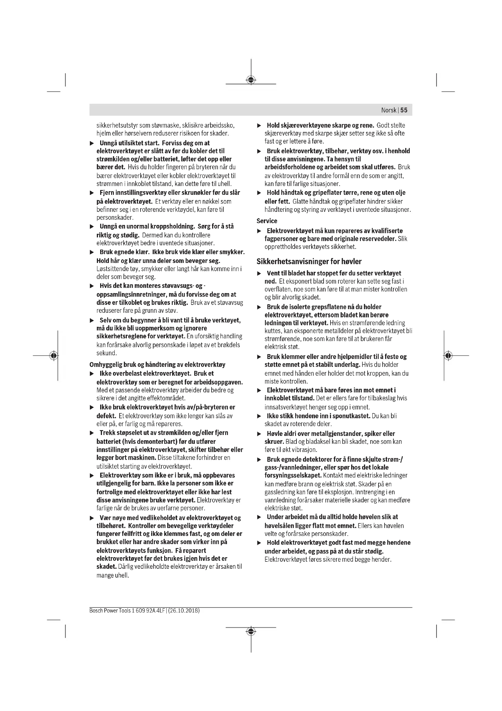 Illustrert eller beskrevet tilbehør inngår ikke i standard- leveransen. Det komplette tilbehøret finner du i vårt tilbehørsprogram. Tekniske data Høvel GHO 16-82 GHO 26-82 D Artikkelnummer 3 601 EA4 0.. 3 601 EA4 3.. Opptatt effekt W 630 710 Tomgangsturtall o/min 18000 18000 Spondybde mm 0 – 1,6 0 – 2,6 Falsdybde mm 0 – 9 0 – 9 Maks. høvelbredde mm 82 82 Vekt i samsvar med EPTA-Procedure 01:2014 kg 3,4 3,4 Kapslingsgrad / II / II Angivelsene gjelder for merkespenning [U] på 230 V. Ved avvikende spenning og på utførelser for bestemte land kan disse angivelsene variere. Støy-/vibrasjonsinformasjon Støyemisjon målt i henhold til EN62841-2-14. Vanlig A-støynivå for elektroverktøyet: lydtrykknivå 84dB(A); lydeffektnivå 95dB(A). Usikkerhet K=3dB. Bruk hørselvern! Total vibrasjonsverdi a