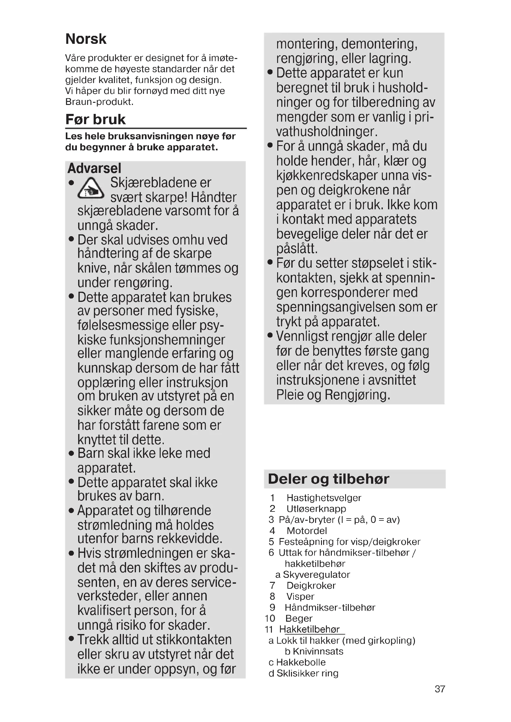 Last ned instruksjonene for din Stavmikser i PDF-format gratis! Finn veiledningen din HM5107WH - BRAUN og ta den elektroniske enheten tilbake i hendene. På denne siden er alle dokumenter som er nødvendige for bruken av enheten din publisert. HM5107WH av merket BRAUN.