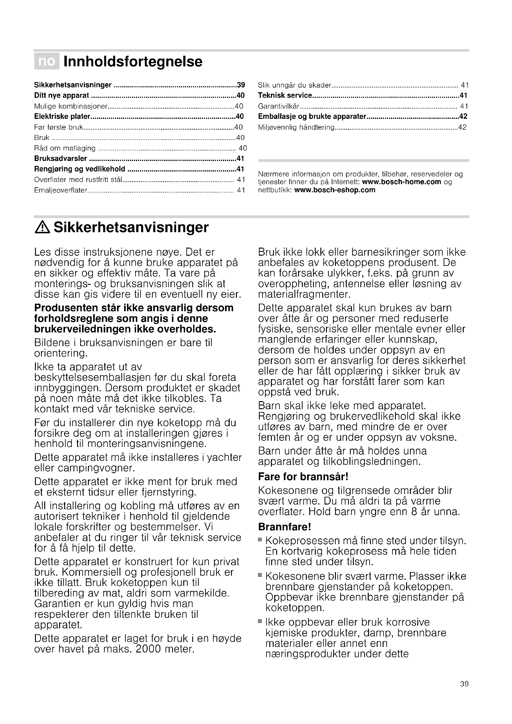Kokesonene blir svært varme. Plasser ikke brennbare gjenstander på koketoppen. Oppbevar ikke brennbare gjenstander på koketoppen. Brannfare!