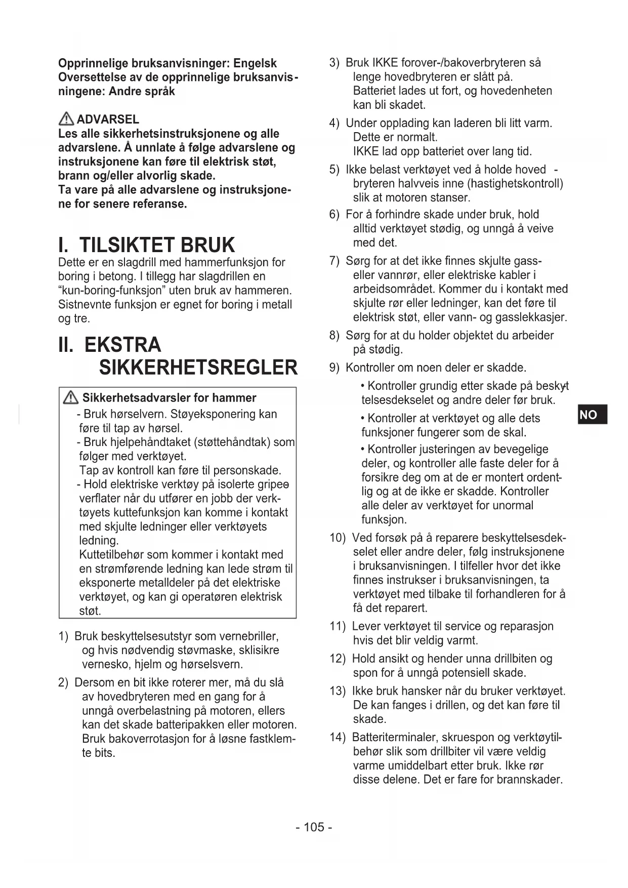 Opprinnelige bruksanvisninger: Engelsk Oversettelse av de opprinnelige bruksanvis
