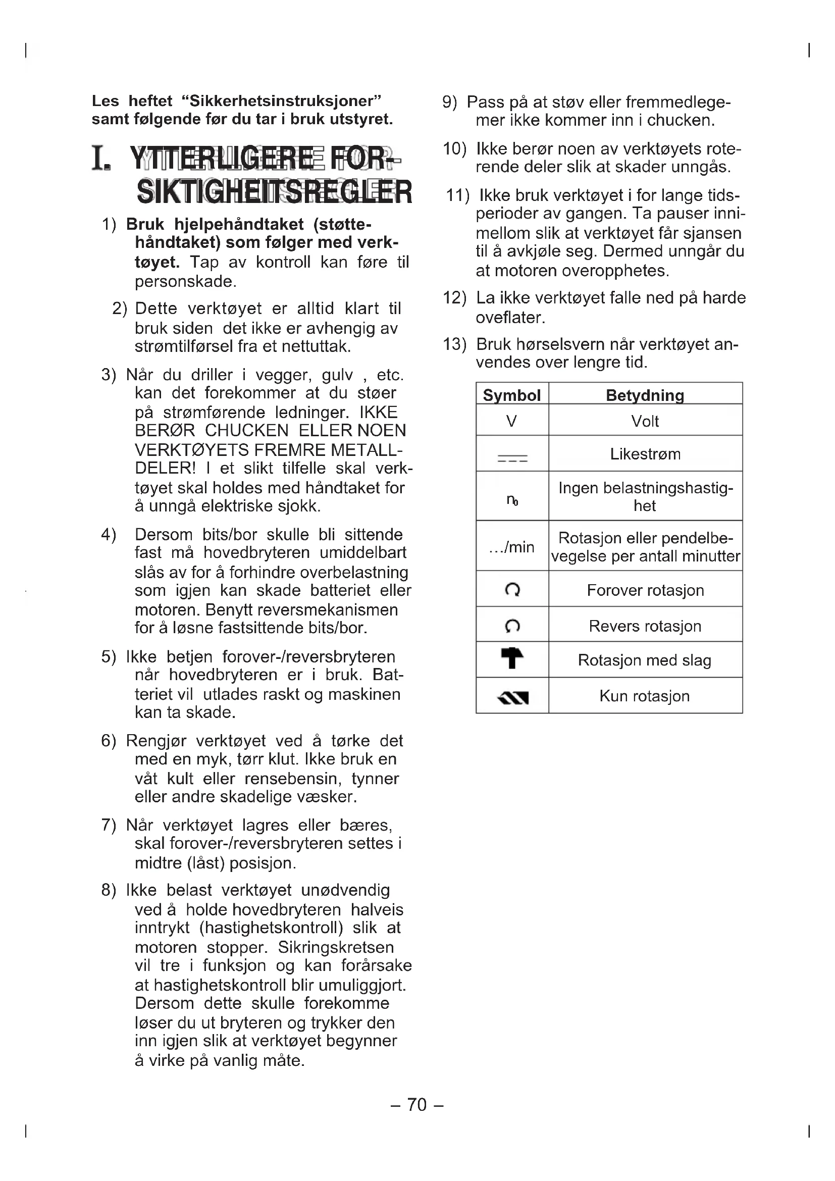 13) Bruk hørselsvern nár verktøyet anvendes over lengre tid.
