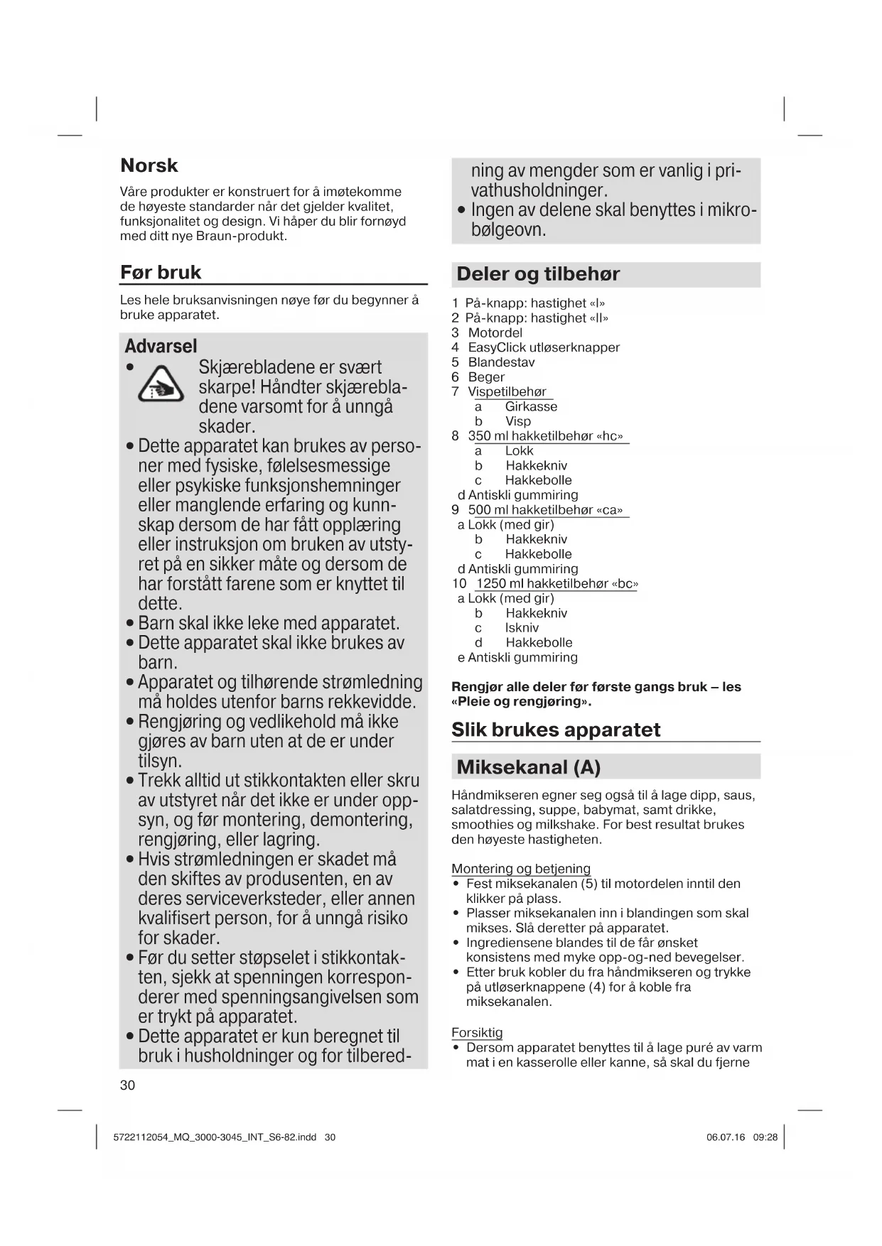 - Hakkebollen skal aldri plasseres i mikrobølgeovnen. 5722112054_MQ_3000-3045_INT_S6-82.indd 315722112054_MQ_3000-3045_INT_S6-82.indd 31 06.07.16 09:2806.07.16 09:2832 «bc» Eksempel på oppskrift: Pannekakedeig 375 ml melk 250 g hvetemel 2 egg