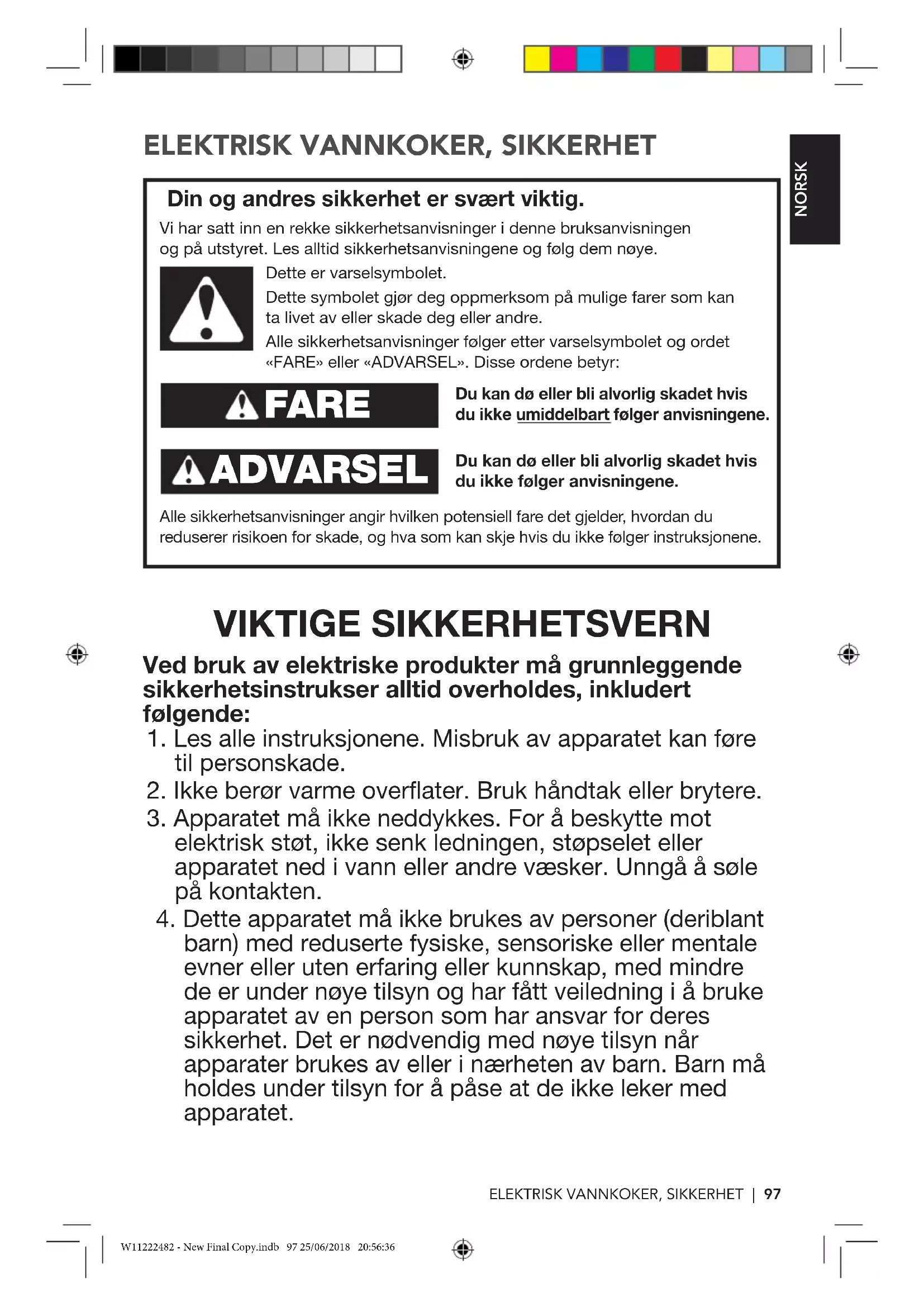 ELEKTRISK VANNKOKER SIKKERHET97