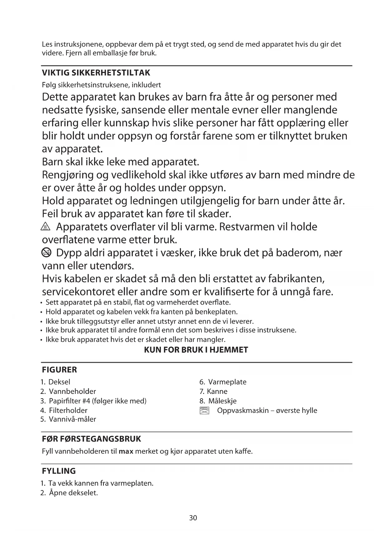 Fyll vannbeholderen til max merket og kjør apparatet uten kae. FYLLING