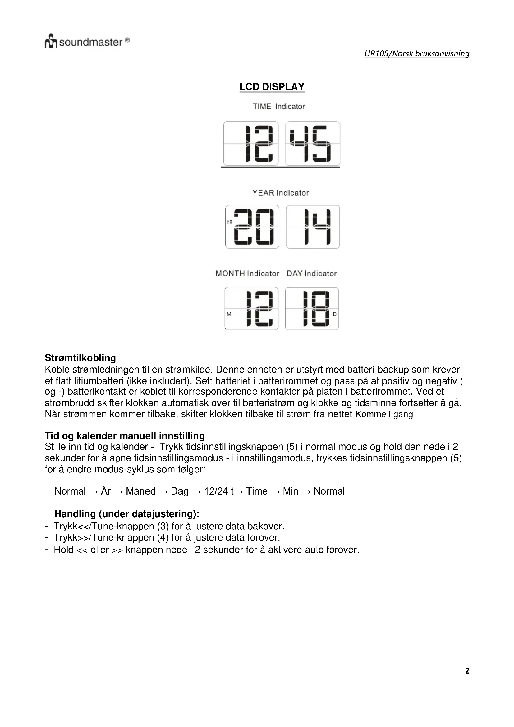 Finn enhetens veiledning gratis UR105HBR Soundmaster i PDF-format.
