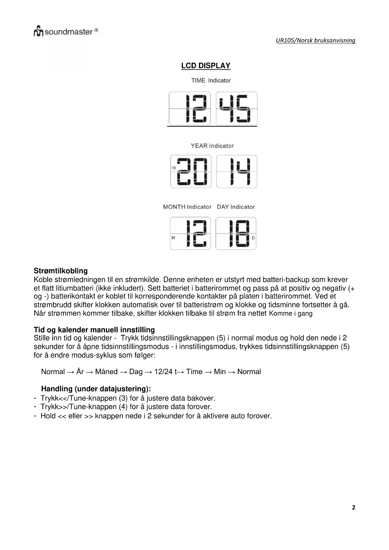 BRUKSANVISNING UR105BR Soundmaster
