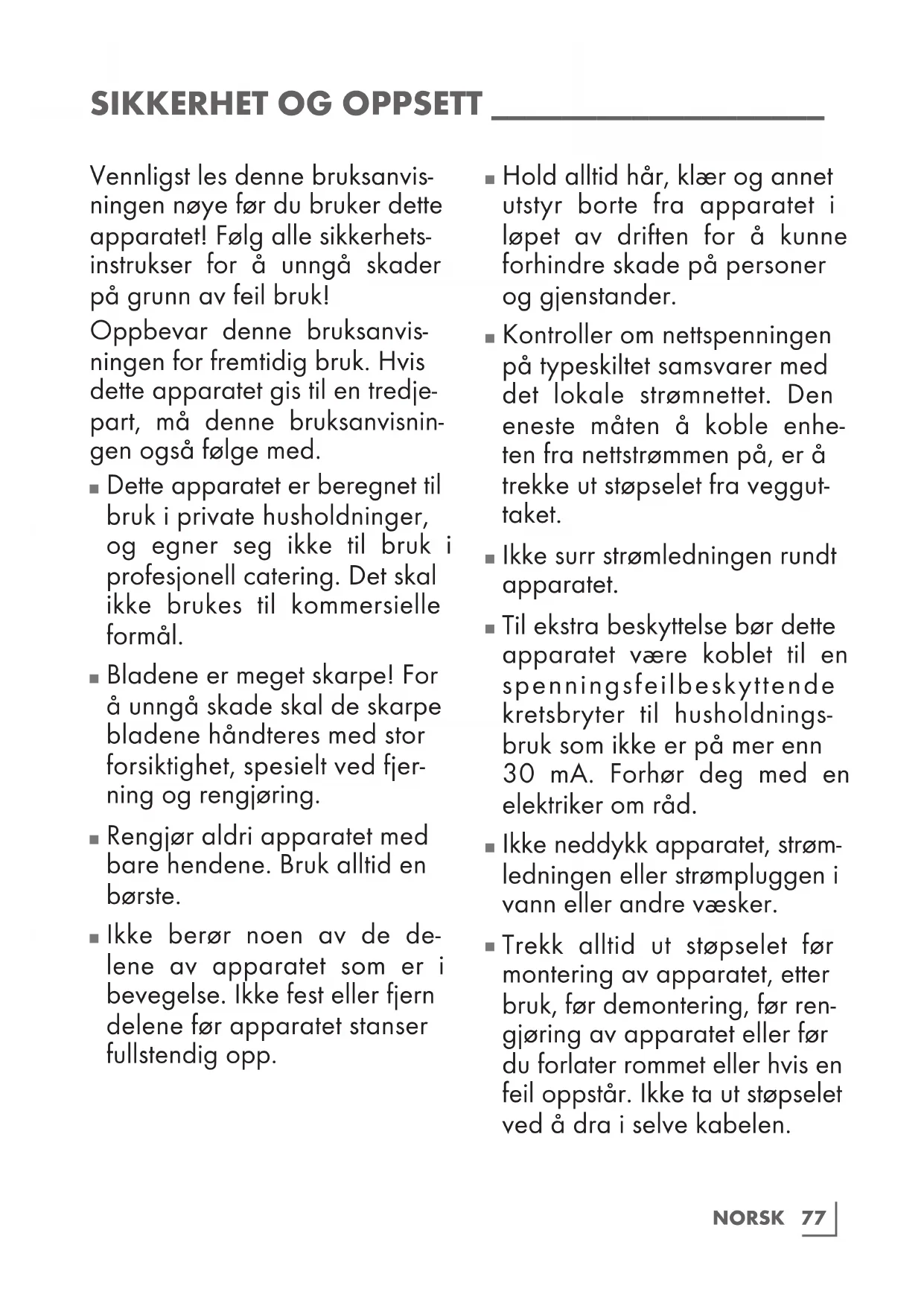 Vennligst les denne bruksanvis- ningen nøye før du bruker dette apparatet! Følg alle sikkerhets- instrukser for å unngå skader på grunn av feil bruk! Oppbevar denne bruksanvis- ningen for fremtidig bruk. Hvis dette apparatet gis til en tredje- part, må denne bruksanvisnin- gen også følge med.