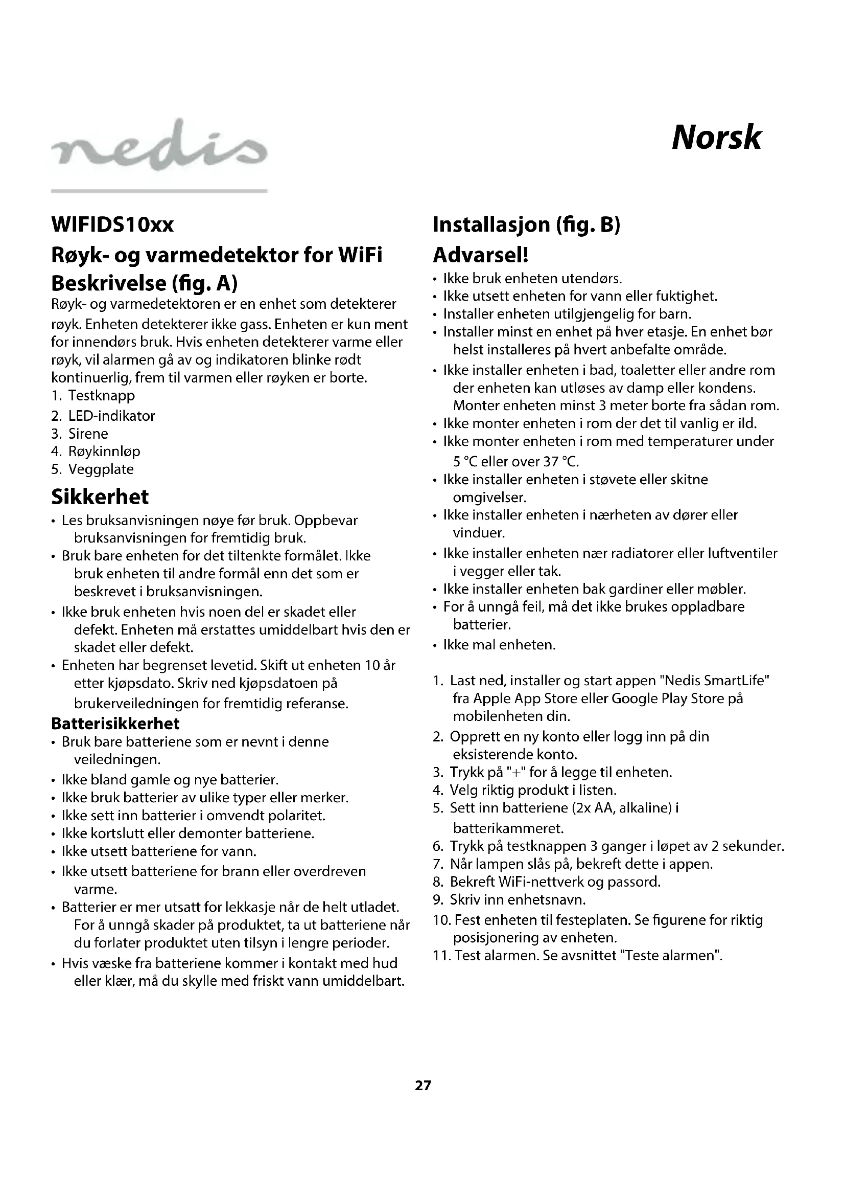 WIFIDS10WT - Røykvarsler NEDIS - Gratis bruksanvisning og manual