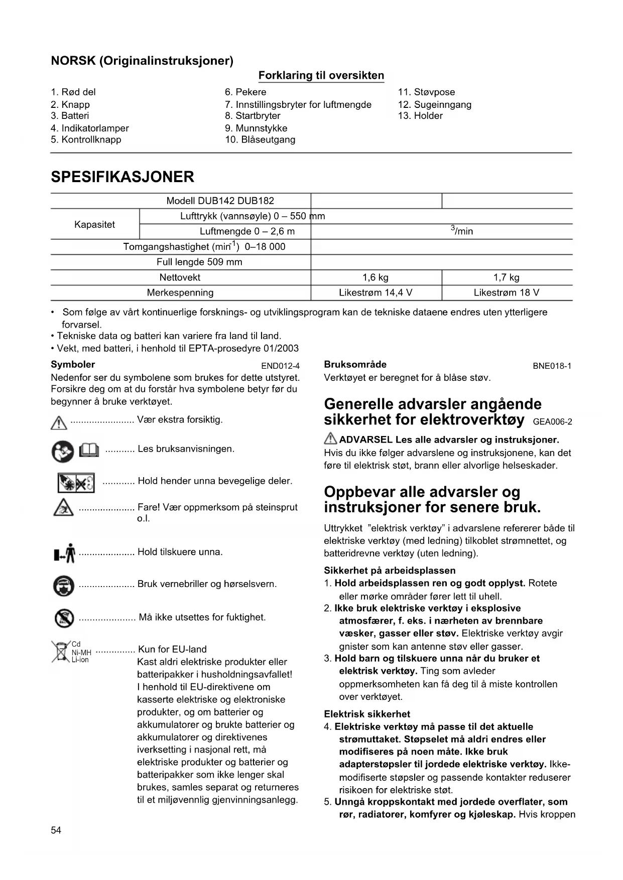 Uttrykket "elektrisk verktøy" i advarslene refererer bade til elektriske verktøy (med ledning) tilkoblet strømnettet, og batteridrevne verktøy (uten ledning).