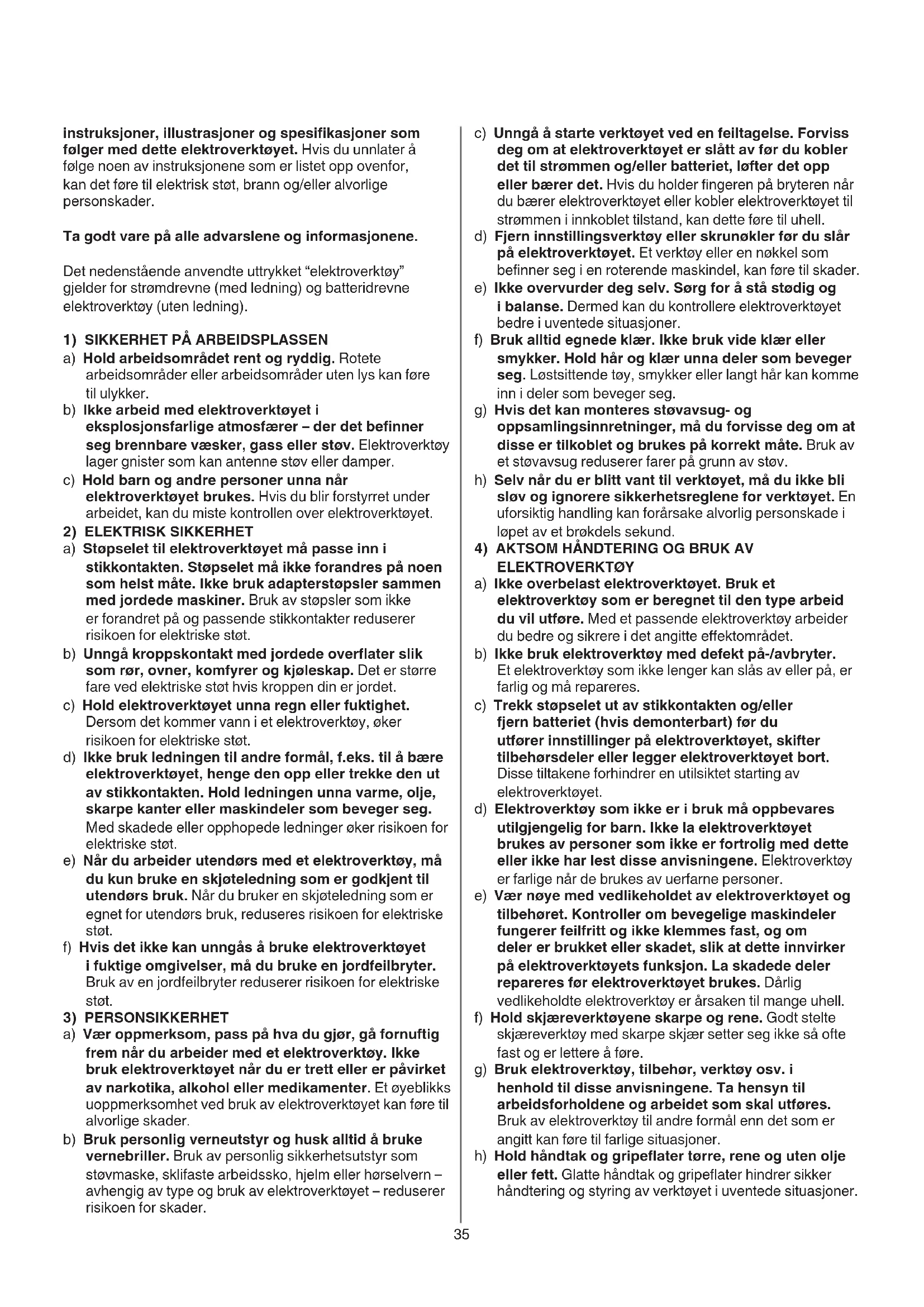 4) AKTSOM HändTERING OG BRUK AV ELEKTKOVERKTÖY