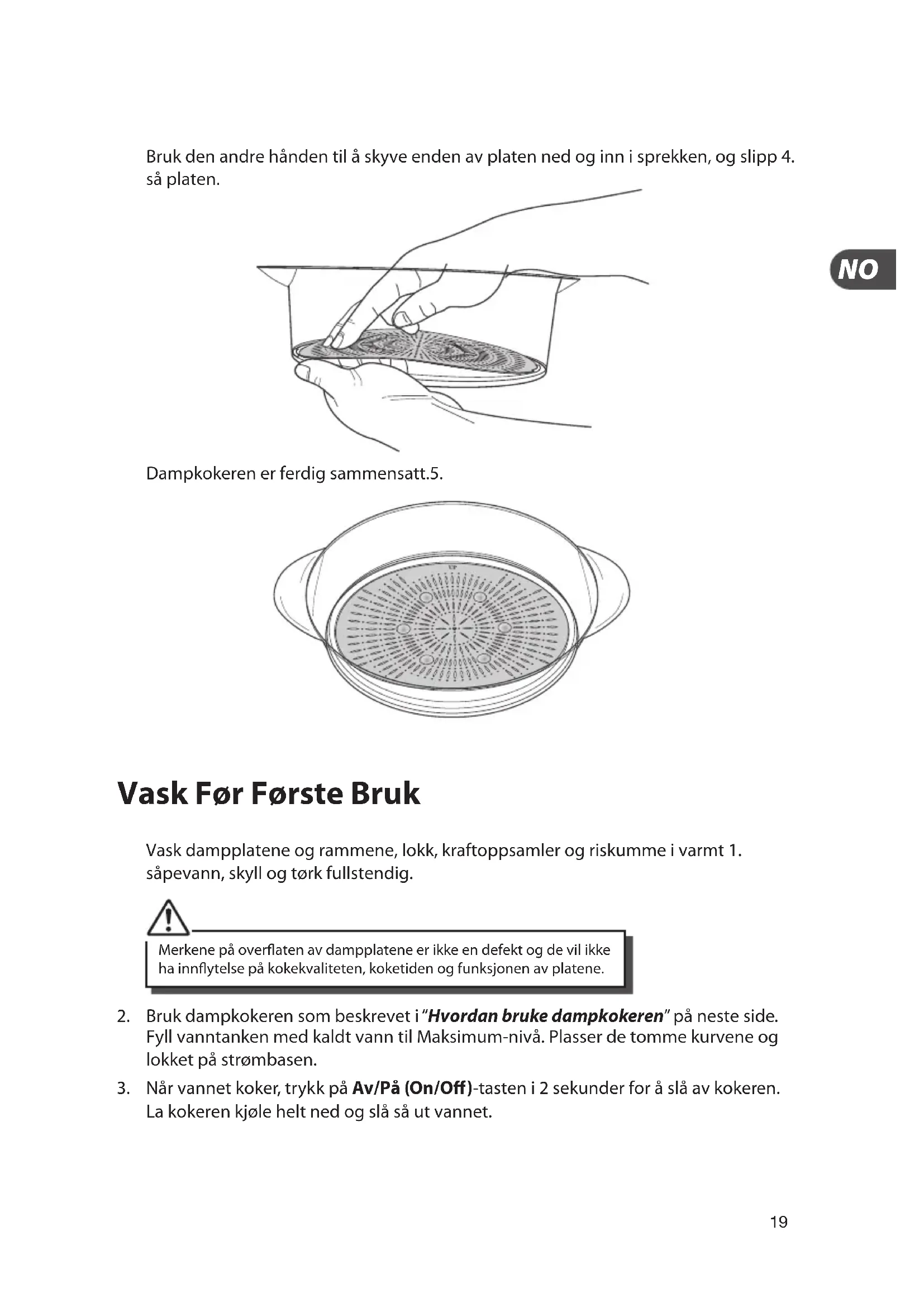 - Berör违法犯罪 Bruk handakt erker skaf. Bruk alltid grytekluster eller ovnshansker när du tari varme overflater. Unngä alltid den kokende dampen som stiger opp fra toppen av dampkokeren. För体系建设 apparatus när det damper. Fjem lokket ved à fore det langsmört bort fra deg. Bruk alltid handakt när du skal flytte på apparatet.