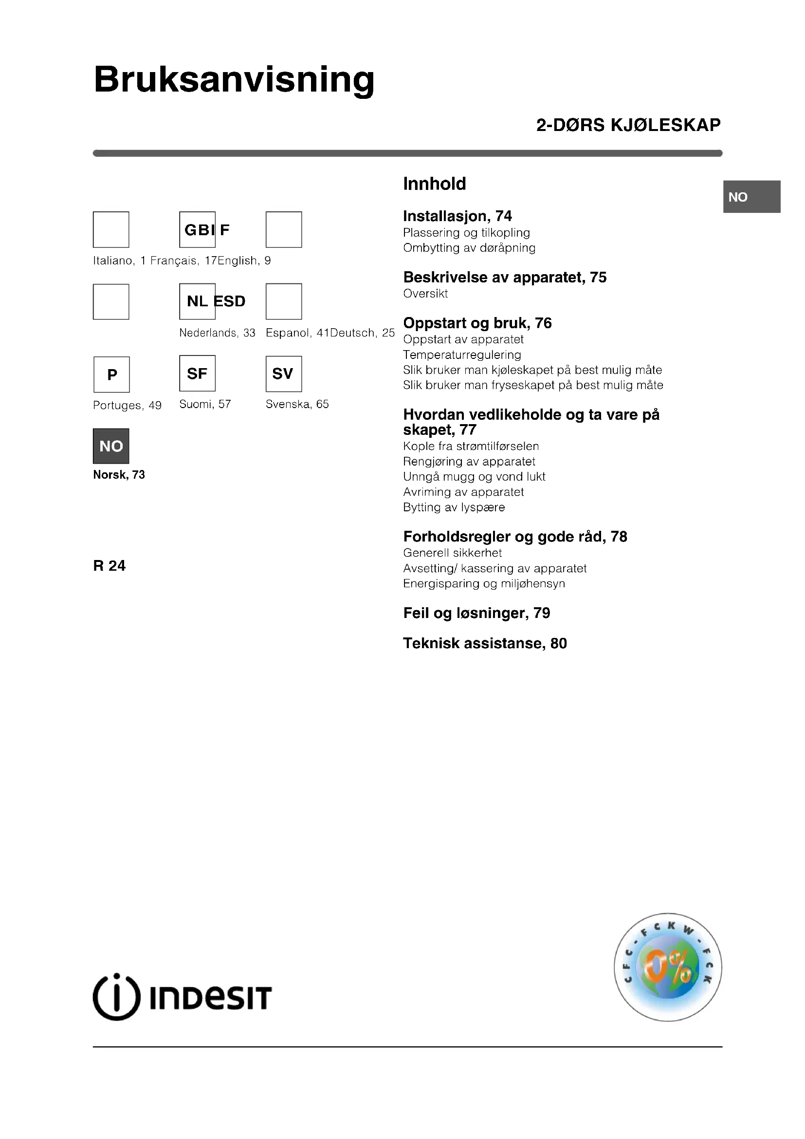 R 24 (EU) - Kjøleskap INDESIT - Gratis bruksanvisning og manual