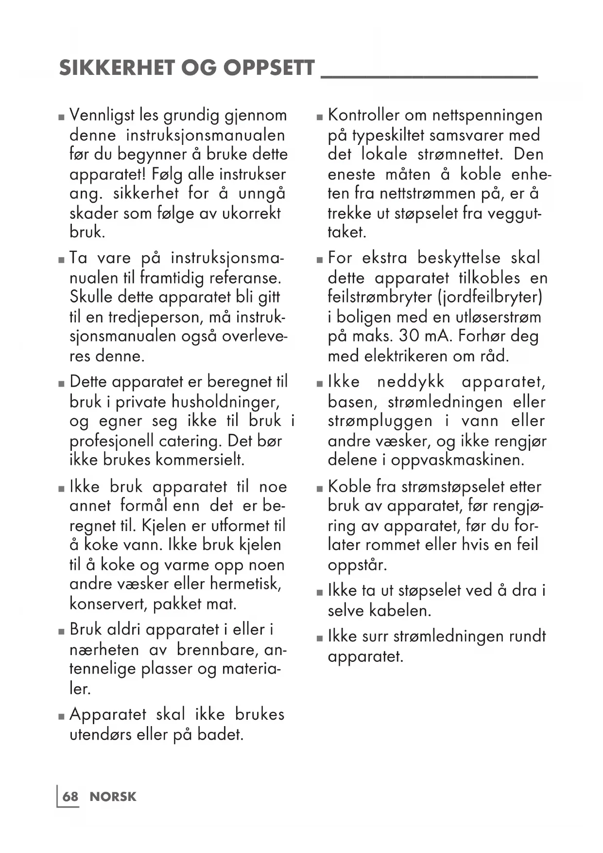 Vennligst les grundig gjennom denne instruksjonsmanualen før du begynner å bruke dette apparatet! Følg alle instrukser ang. sikkerhet for å unngå skader som følge av ukorrekt bruk.