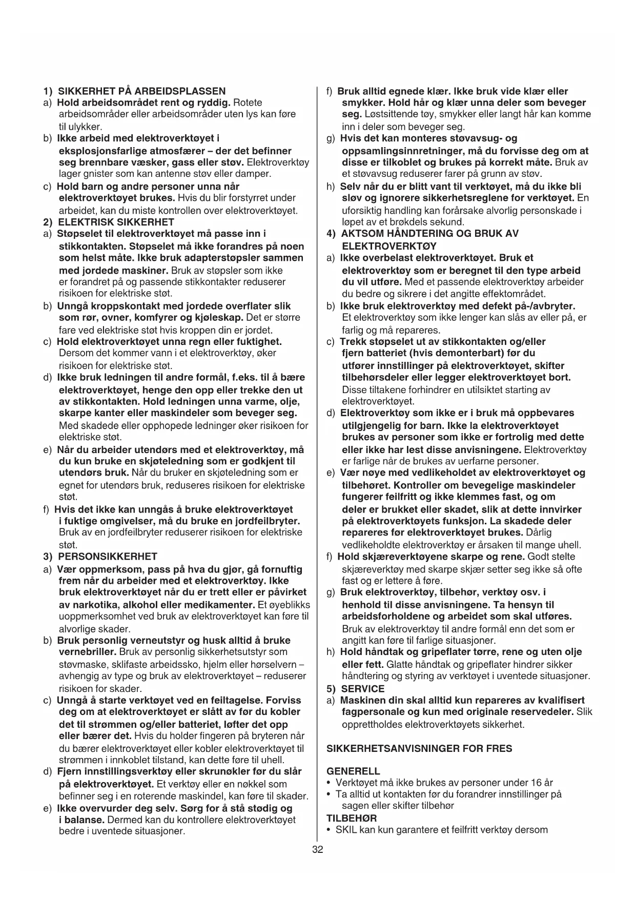 - Se www.skil.com for mer informasjon VEDLIKEHOLD / SERVICE