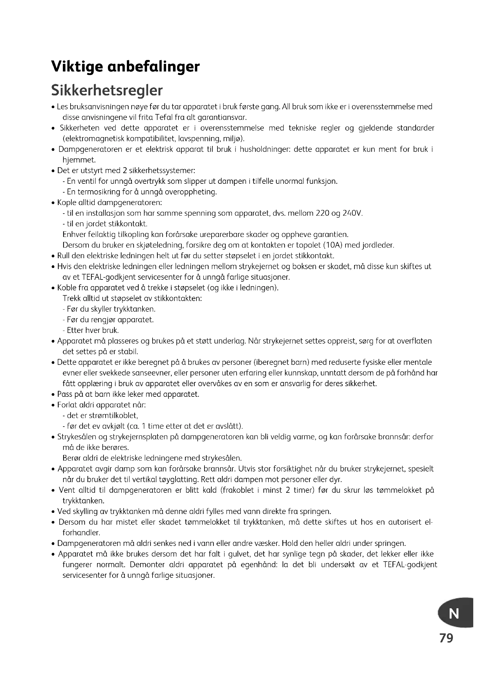 - Les bruksanvisningen nøye før du tar apparatet i bruk første gang. All bruk som ikke er i overensstemmelse med disse anvisningene vil frita Tefal fra alt garantiansvar.