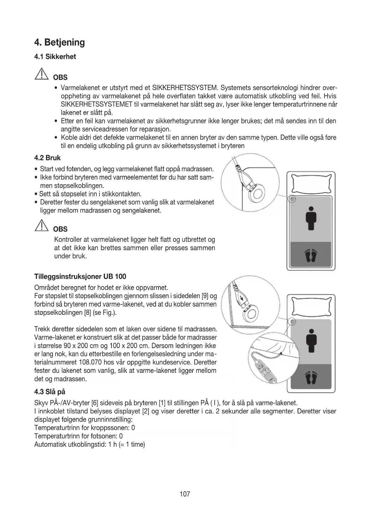 OBS Dette varmelakenet er bare ment til oppvarming av senger.107