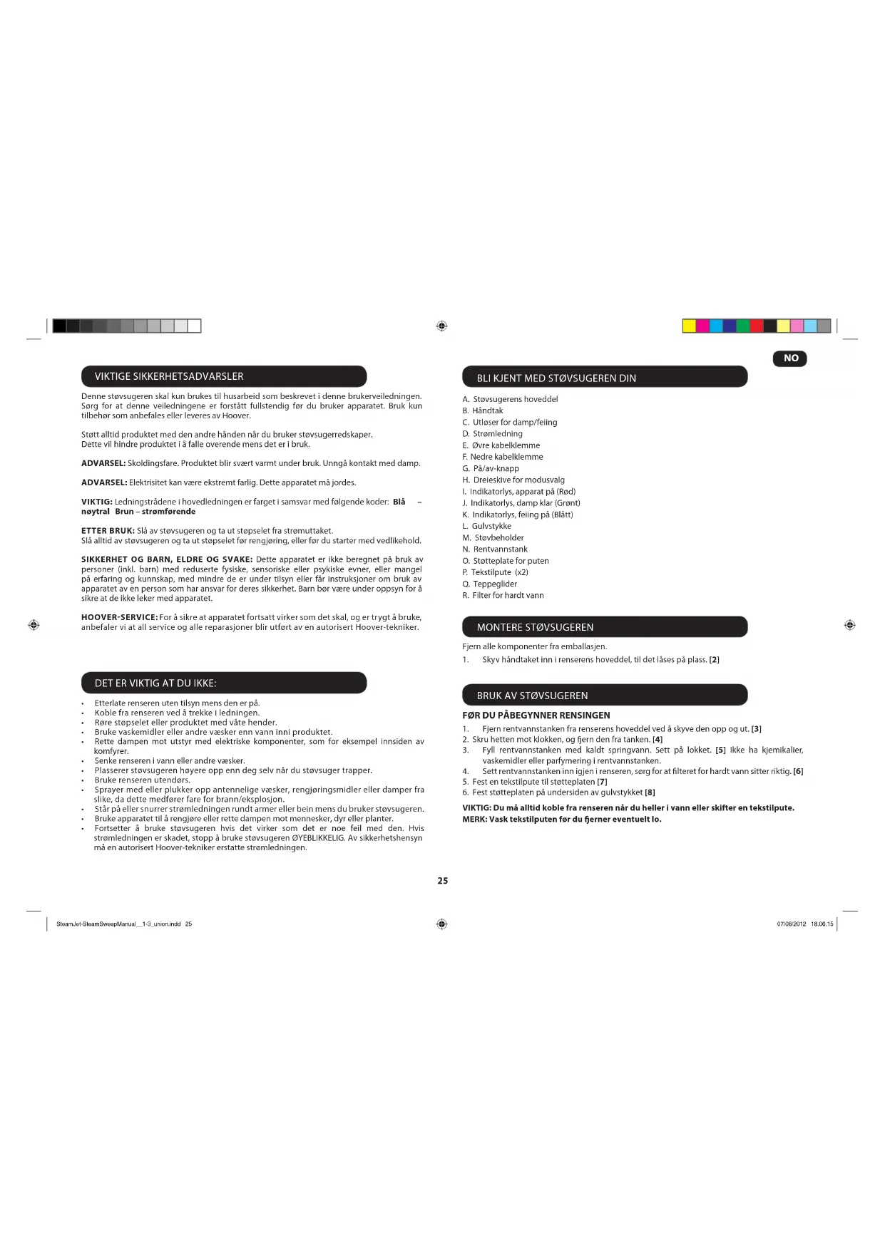 Finn enhetens veiledning gratis SteamJet SSW1700 011 HOOVER i PDF-format.