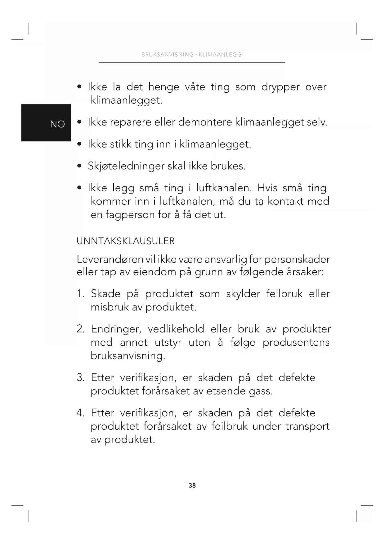 - Klimaanlegget skal ikke brukes i et fuktig miljø.