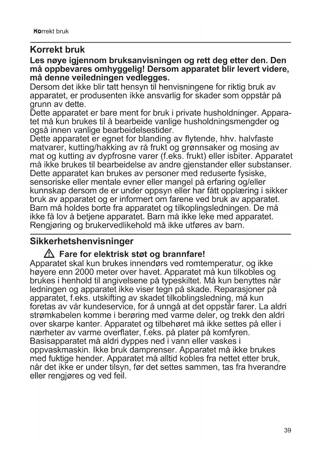 - Sikkerhetshenvisninger p. 39