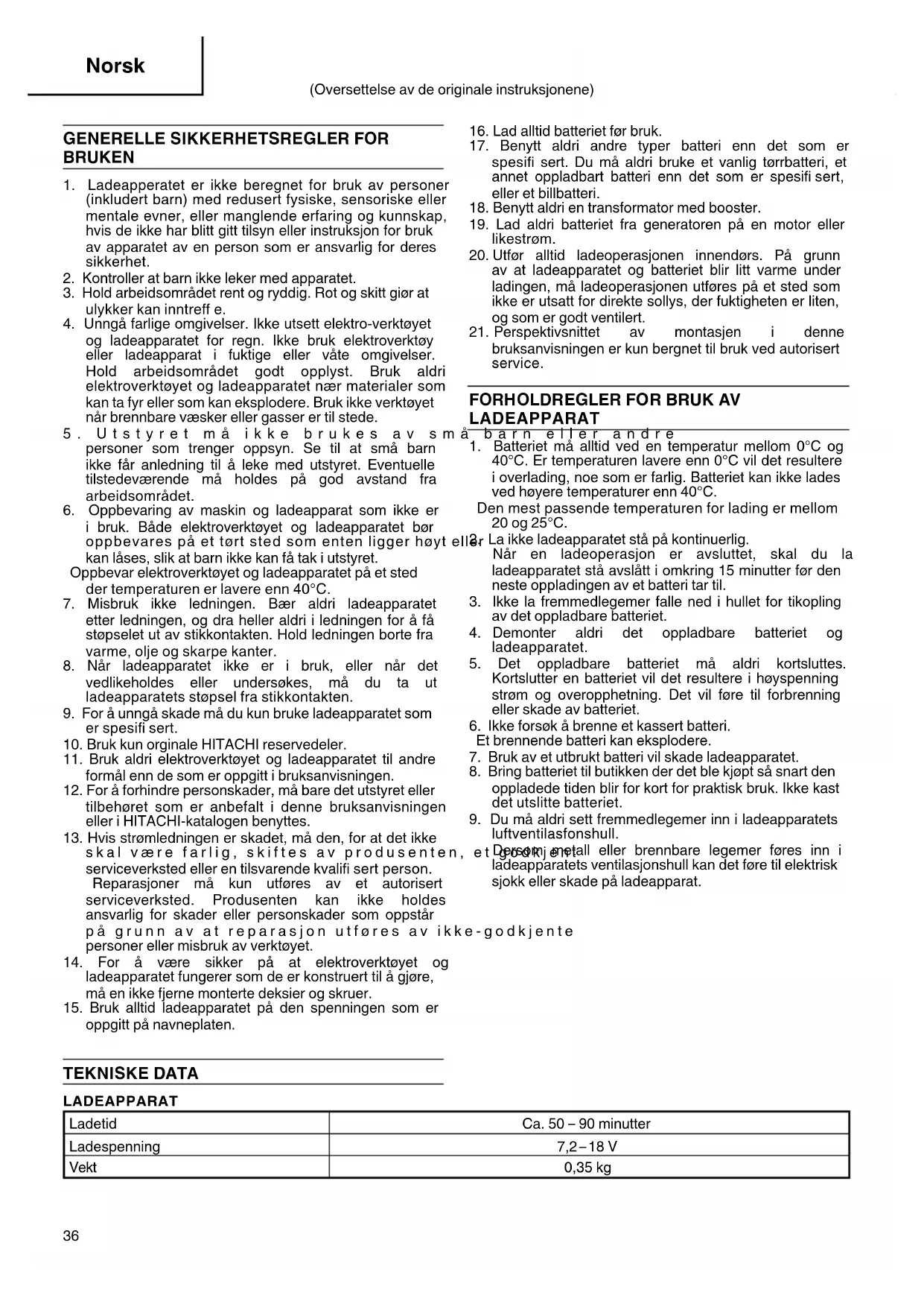 15. Bruk alltid ladeapparatet på den spenningen som er