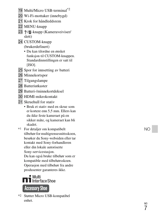 - Strømadapteren AC-UD11 (selges separat) er kanskje ikke tilgjengelig i noen land/regioner.