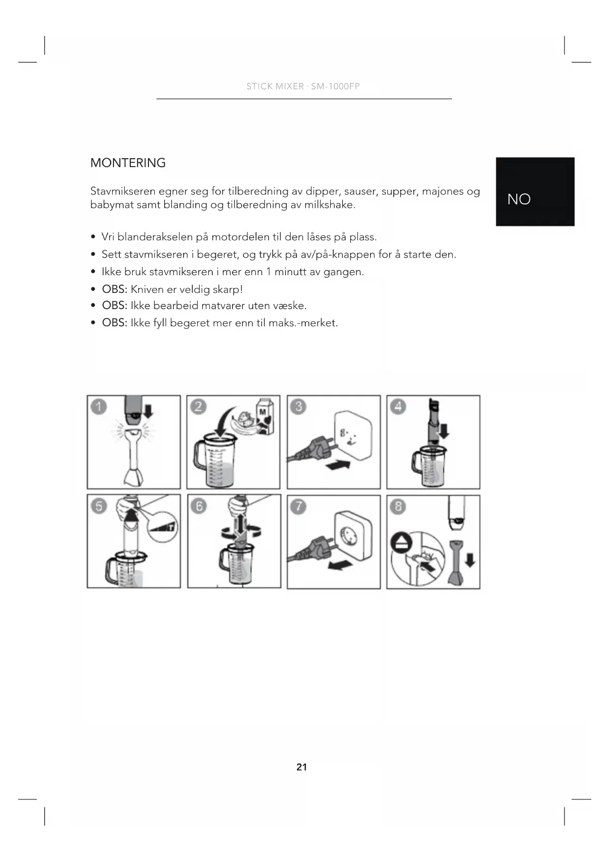 MONTERING Stavmikseren egner seg for tilberedning av dipper, sauser, supper, majones og babymat samt blanding og tilberedning av milkshake.