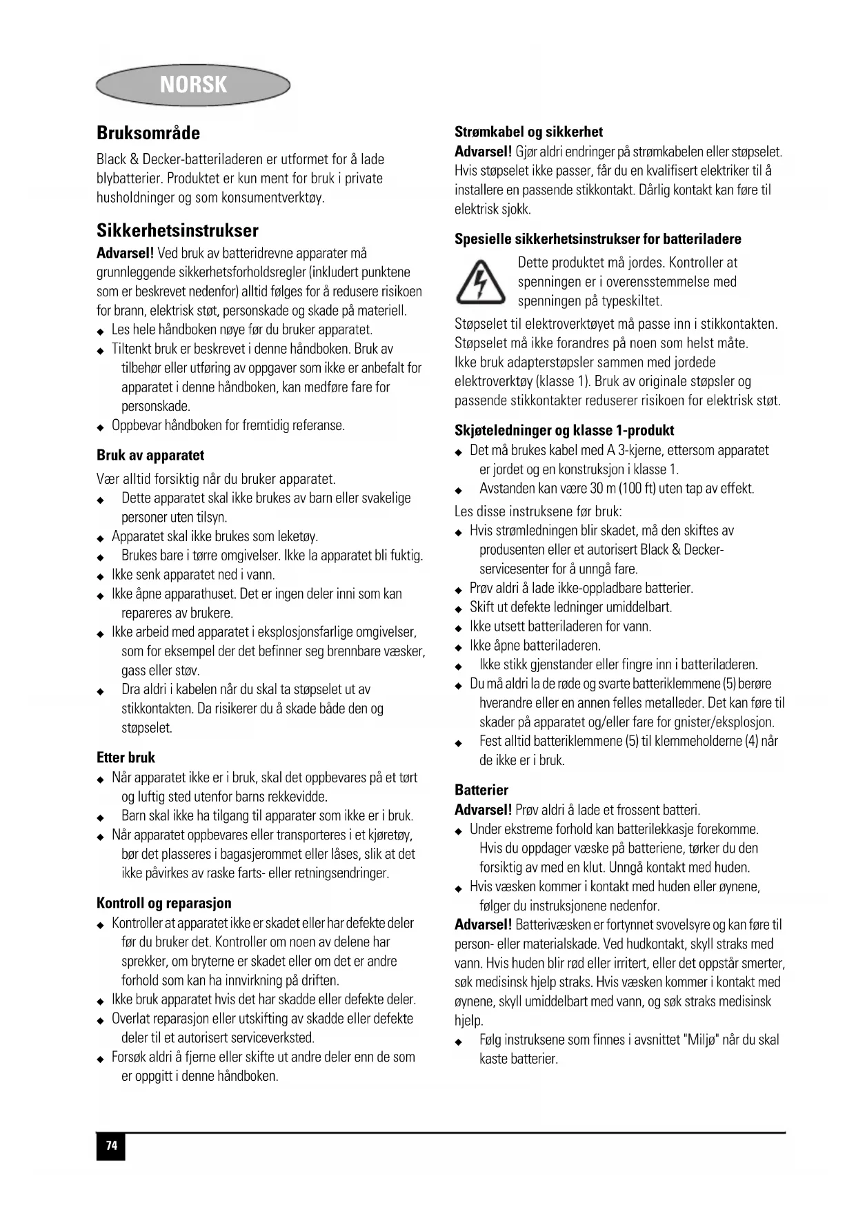 Last ned instruksjonene for din Batterilader i PDF-format gratis! Finn veiledningen din BDV1085 - BLACK & DECKER og ta den elektroniske enheten tilbake i hendene. På denne siden er alle dokumenter som er nødvendige for bruken av enheten din publisert. BDV1085 av merket BLACK & DECKER.