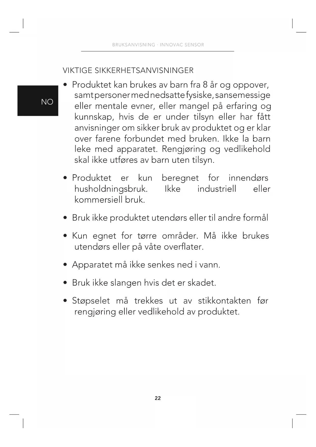 - Produktet er kun beregnet for innendørs husholdningsbruk. Ikke industriell eller kommersiell bruk.