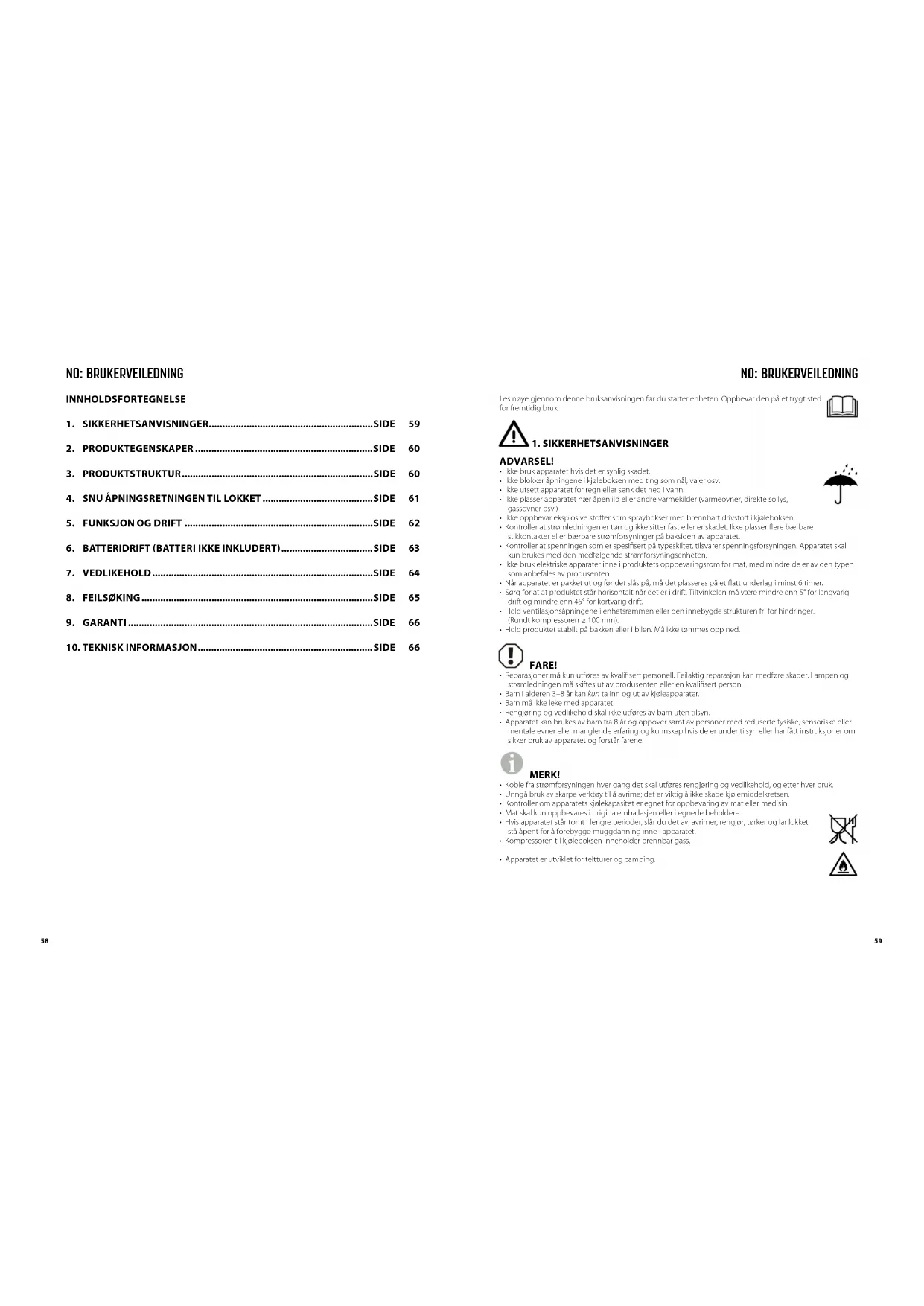 - Apparatet er utviklet for teltturer og camping. NO: BRUKERVEILEDNING6160