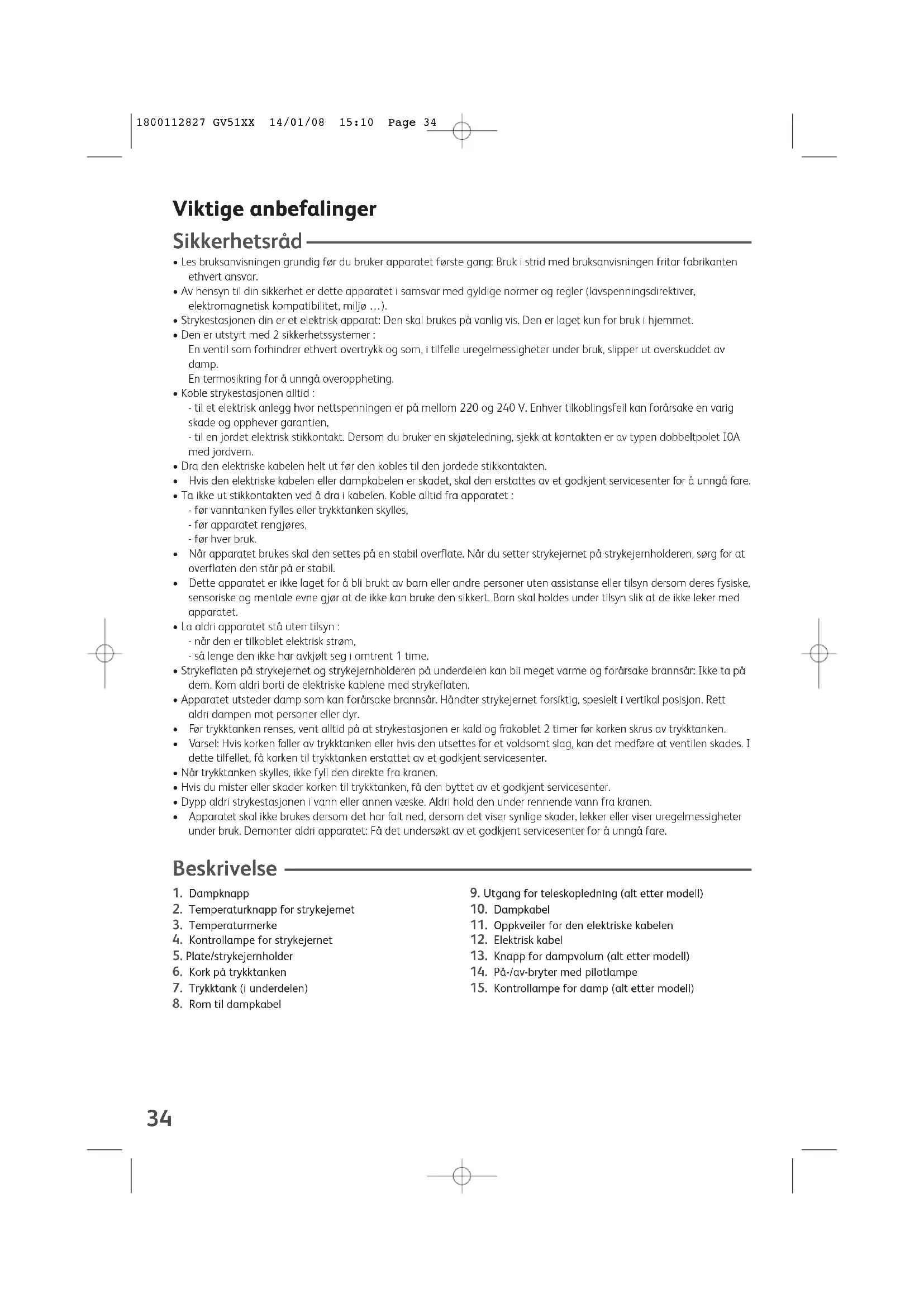 - Strykestasjonen din er et elektrisk apparat: Den skal brukes på vanlig vis. Den er laget kun for bruk i hjemmet.