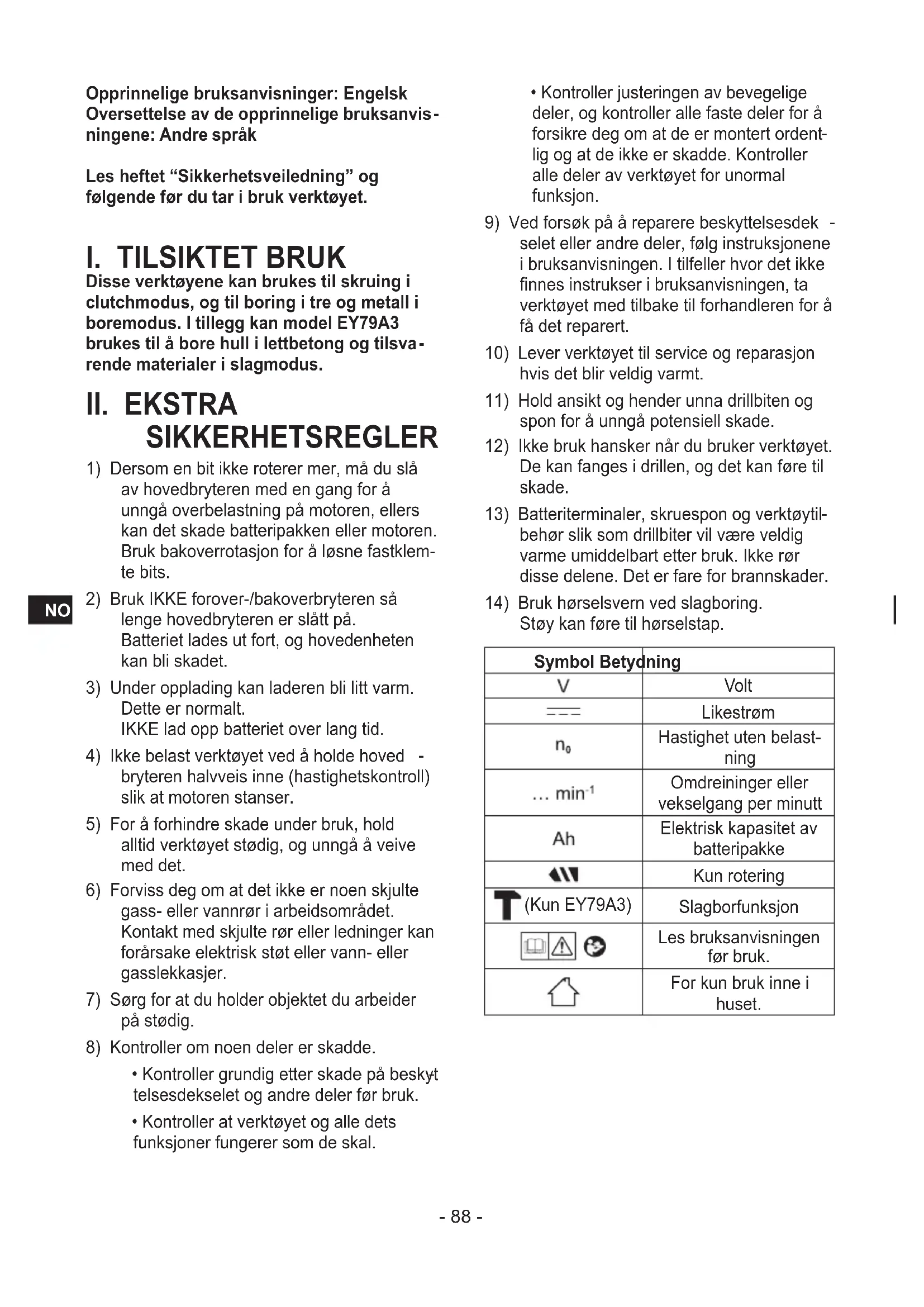 ningene: Andre språk Les heftet “Sikkerhetsveiledning” og følgende før du tar i bruk verktøyet.