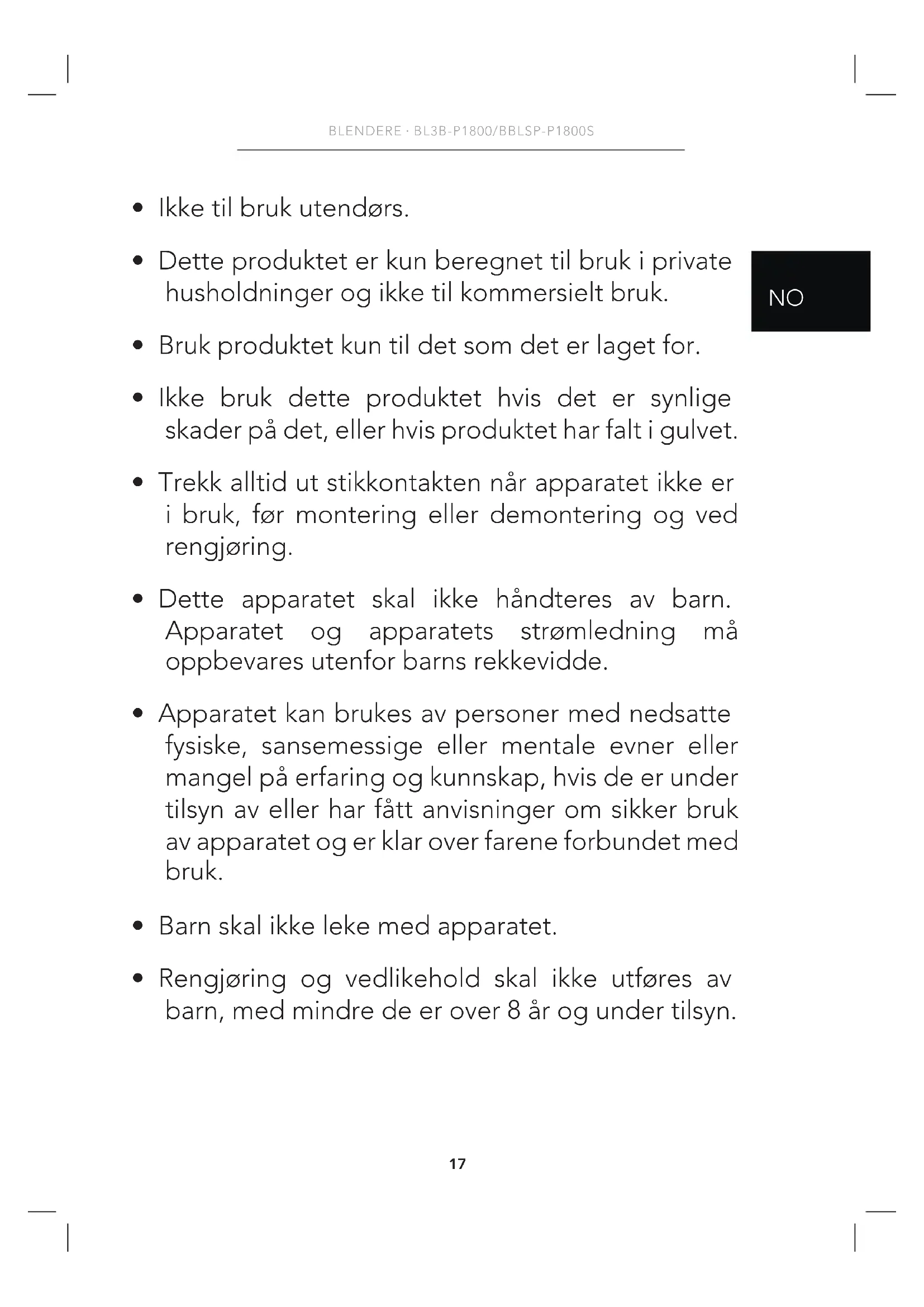 - Rengjøring og vedlikehold skal ikke utføres av barn, med mindre de er over 8 år og under tilsyn.18