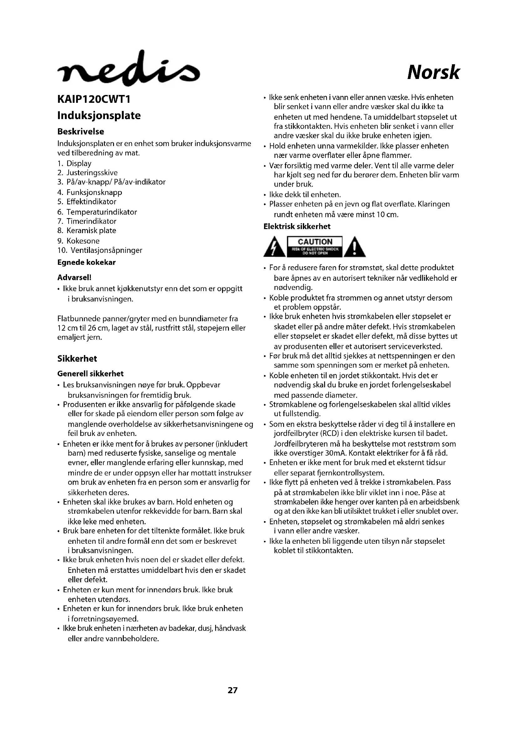 KAIP120CWT1 - Komfyr NEDIS - Gratis bruksanvisning og manual
