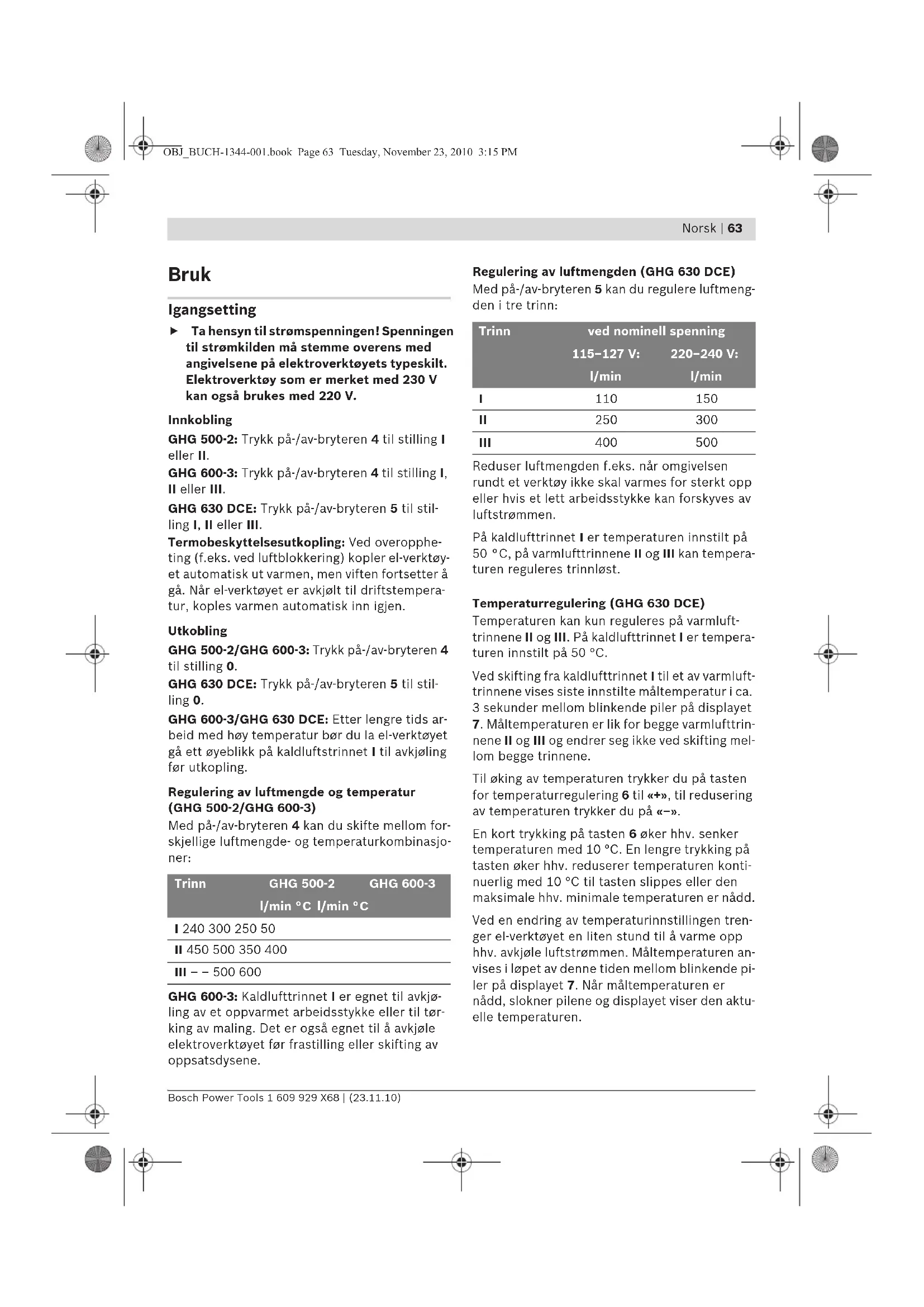 GHG 600-3/GHG 630 DCE: Etter lengre tids arbeid med hoy temperatur bcr du la el-verktoyet gä ett oyeblikk pa kalduftstrinnet I til avkjoling for utkopling.