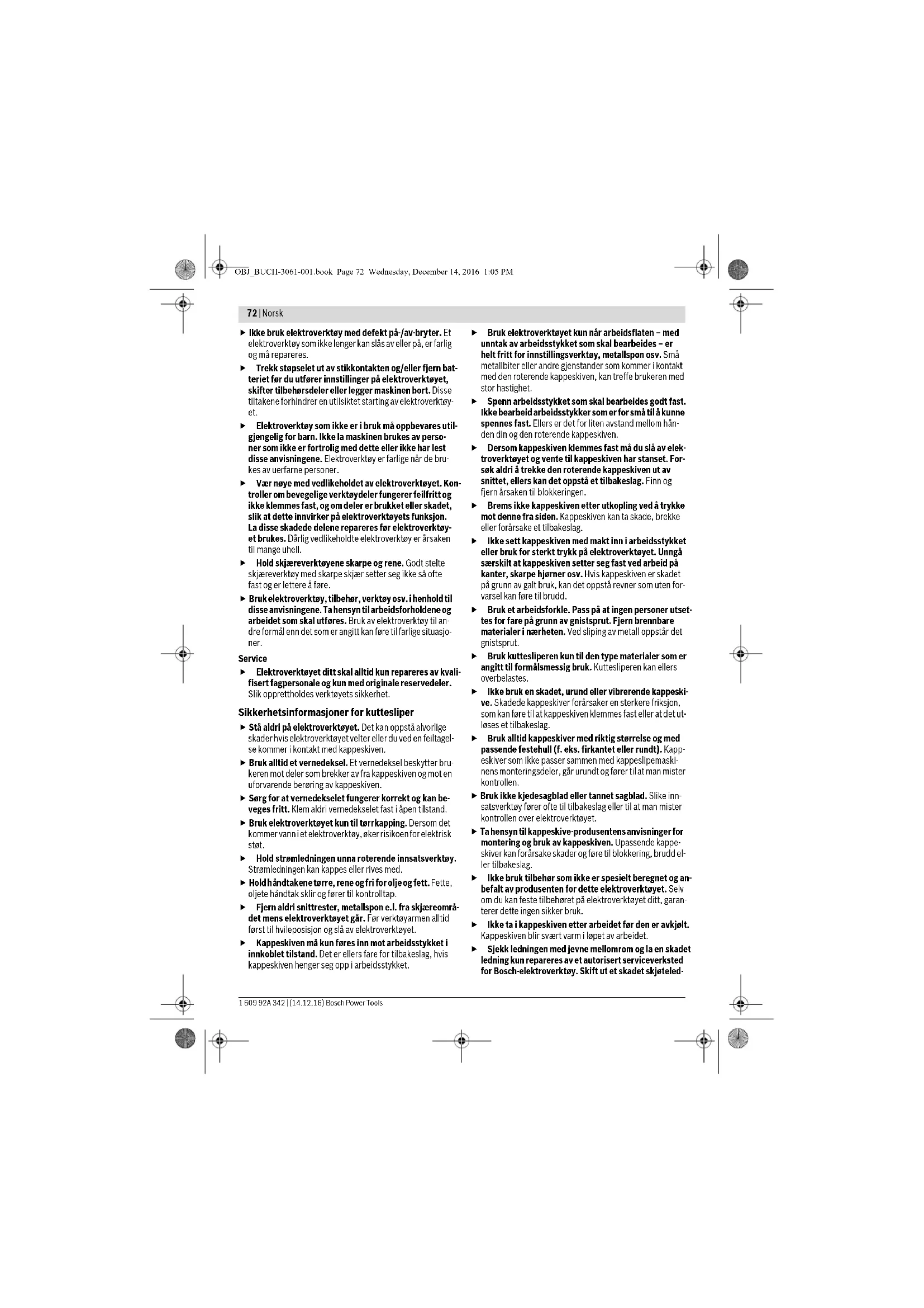 Vekt tilsvarende EPTA- Procedure 01:2014 kg 18,0 18,0 Beskyttelsesklasse /II /II Godkjente arbeidsstykkemål (maksimal/minimal) se side 76.Informasjonene gjelder for nominell spenning [U] på 230 V. Ved avvi-kende spenning og på visse nasjonale modeller kan disse informasjone-ne variere noe. OBJ_BUCH-3061-001.book Page 73 Wednesday, December 14, 2016 1:05 PM74 | Norsk 1 609 92A 342 | (14.12.16) Bosch Power Tools Støy-/vibrasjonsinformasjon Støyutslippsverdier målt i henhold til EN 61029-2-10. Maskinens typiske A-bedømte støynivå er: Lydtrykknivå 100,5 dB(A); lydeffektnivå 113,5 dB(A). Usikkerhet K=3dB. Bruk hørselvern! Totale svingningsverdier a