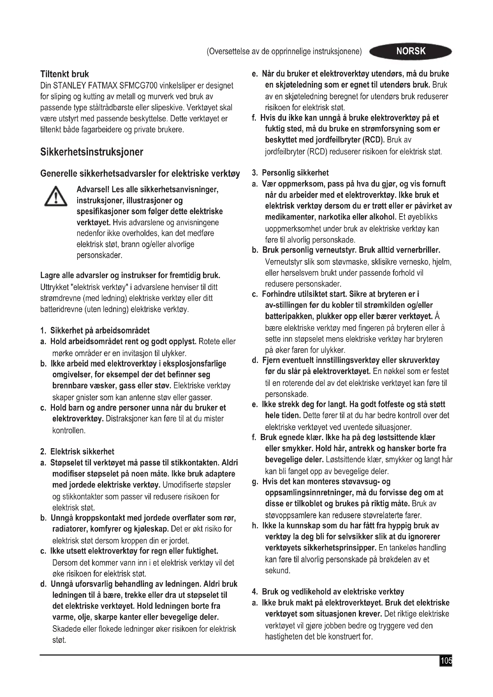 Last ned instruksjonene for din Kvern i PDF-format gratis! Finn veiledningen din SFMCG700 - STANLEY og ta den elektroniske enheten tilbake i hendene. På denne siden er alle dokumenter som er nødvendige for bruken av enheten din publisert. SFMCG700 av merket STANLEY.