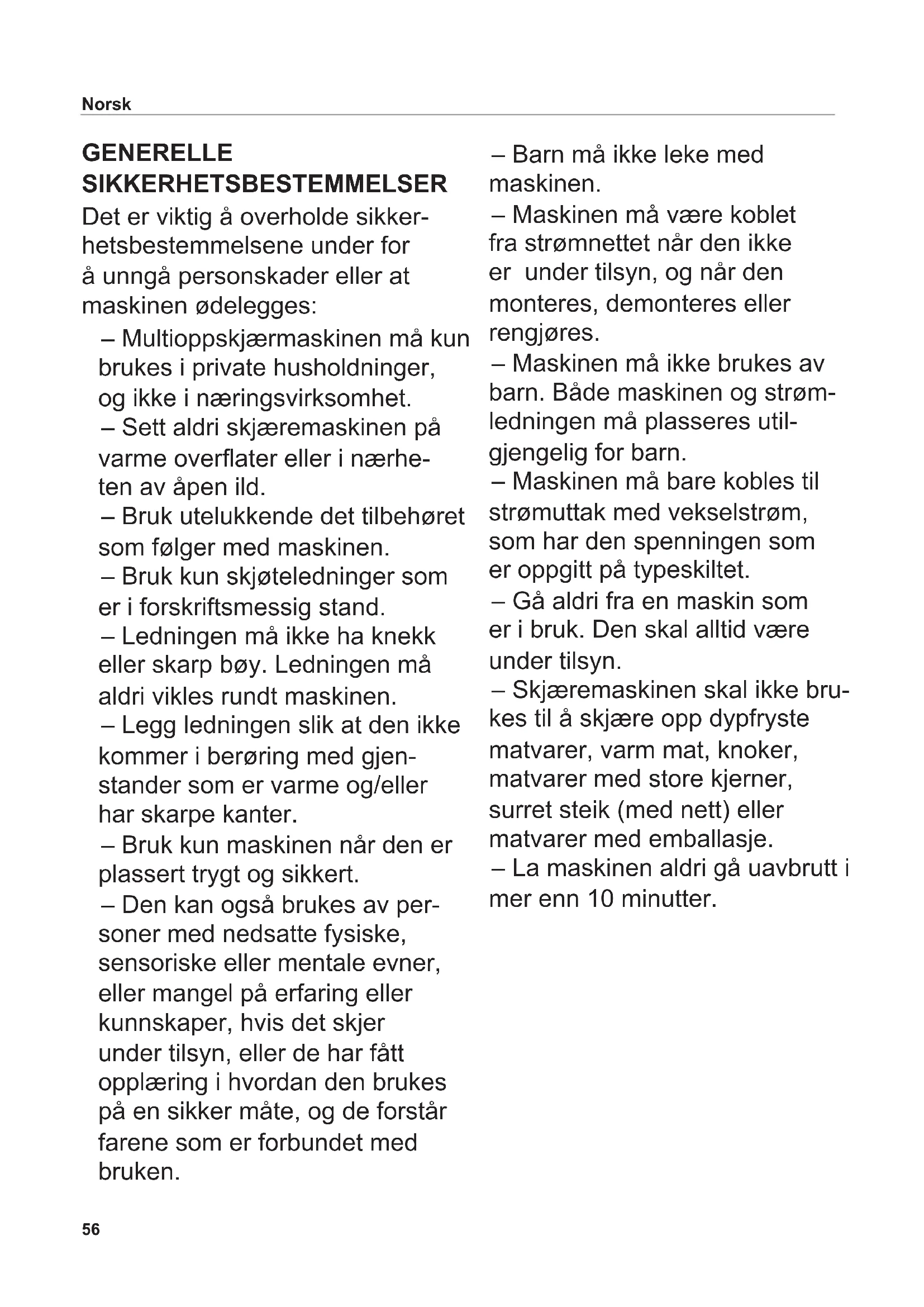 - Etter hver gang maskinen har vært i bruk, må du dreie juste- ringsknappen for skivetykkelse i "0"-stilling slik at den skarpe rundkniven blir dekket til. Dermed unngås personskader. RENGJØRING OBS! Slå av maskinen før den skal gjøres ren, ta støpselet ut av stikkontakten og drei justerings- knappen for skivetykkelse (12) i "0"-stilling. Rengjør universalskjæremas- kinen regelmessig for å hindre at lett bedervelige matrester setter seg fast. Rundkniven må også rengjøres regelmessig som beskrevet under, for å bevare den rustfrie overaten. Merk! Matrester kan over tid angripe materialet i rundkniven, og føre til at det oppstår rust. Forberedelse