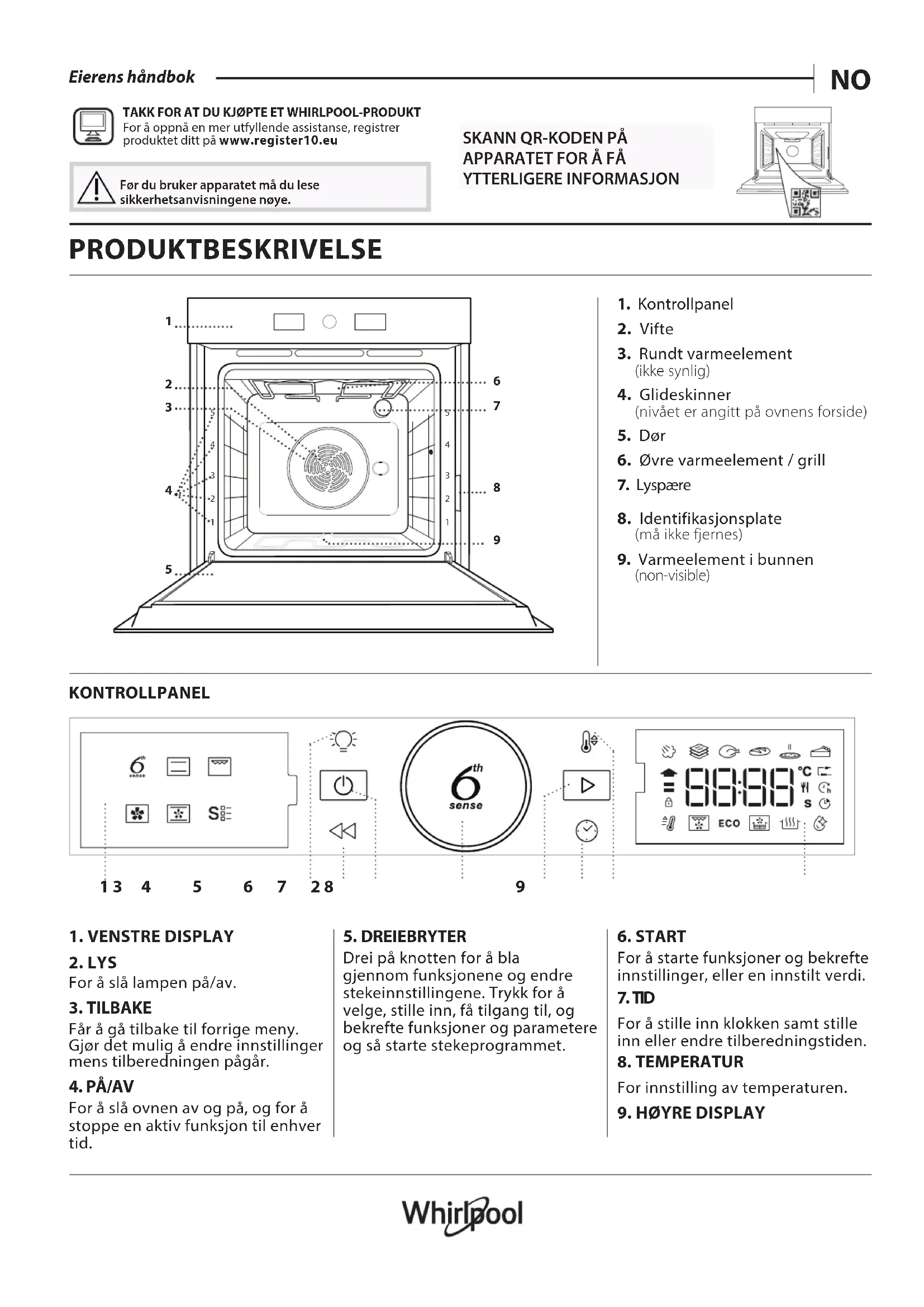 WOI4S8HM2SWA - Ovn WHIRLPOOL - Gratis bruksanvisning og manual