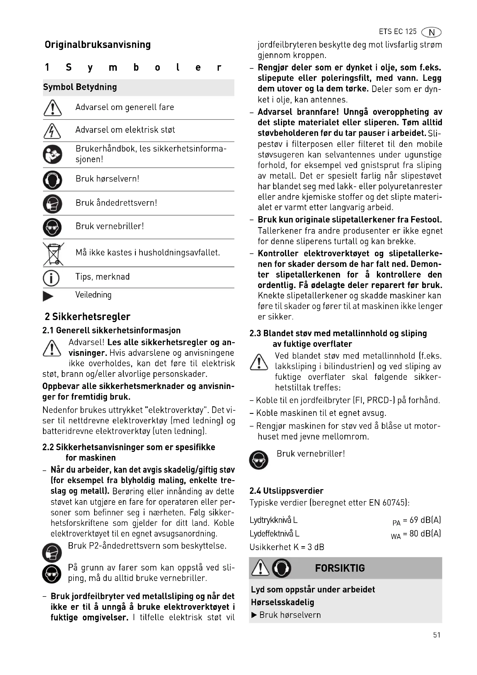 Last ned instruksjonene for din Slipemaskin i PDF-format gratis! Finn veiledningen din ETS EC 1253 EQ - FESTOOL og ta den elektroniske enheten tilbake i hendene. På denne siden er alle dokumenter som er nødvendige for bruken av enheten din publisert. ETS EC 1253 EQ av merket FESTOOL.
