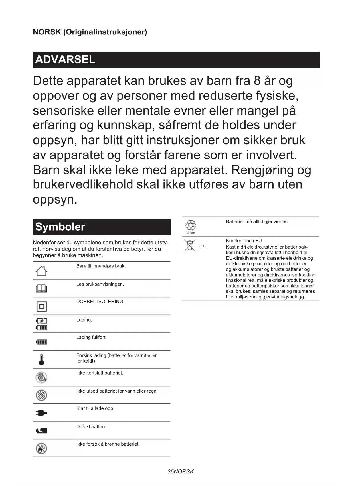 lese alle anvisninger og skilt på (1) batterilade- ren, (2) batteriet og (3) det produktet batteriet skal brukes i.