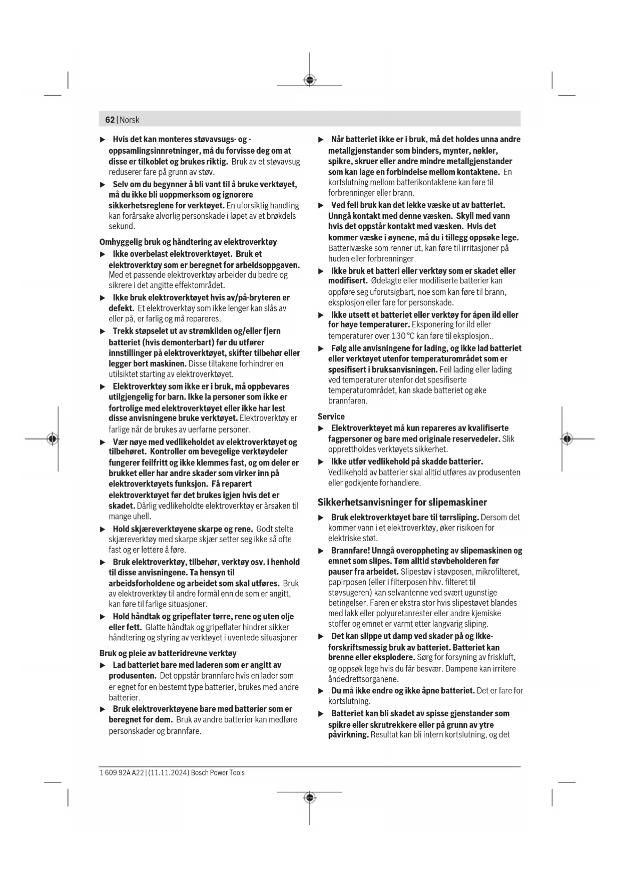 og ved lagring °C –15...+50 Anbefalte batterier GBA12V... Anbefalte ladere GAL12... GAX18... A) avhengig av benyttet batteri B) begrenset ytelse ved temperaturer <0°C Verdiene kan variere avhengig av produktet, bruksområdet og miljøforholdene. Du finner mer informasjon på www.bosch-professional.com/wac. Støy-/vibrasjonsinformasjon Støyemisjon målt i henhold tilEN62841-2-4. Vanlig A-lydtrykknivå for enheten er under 70dB(A). Støynivået kan overskride de angitte verdiene under arbeidet. Bruk hørselvern! Vibrasjon totalt a