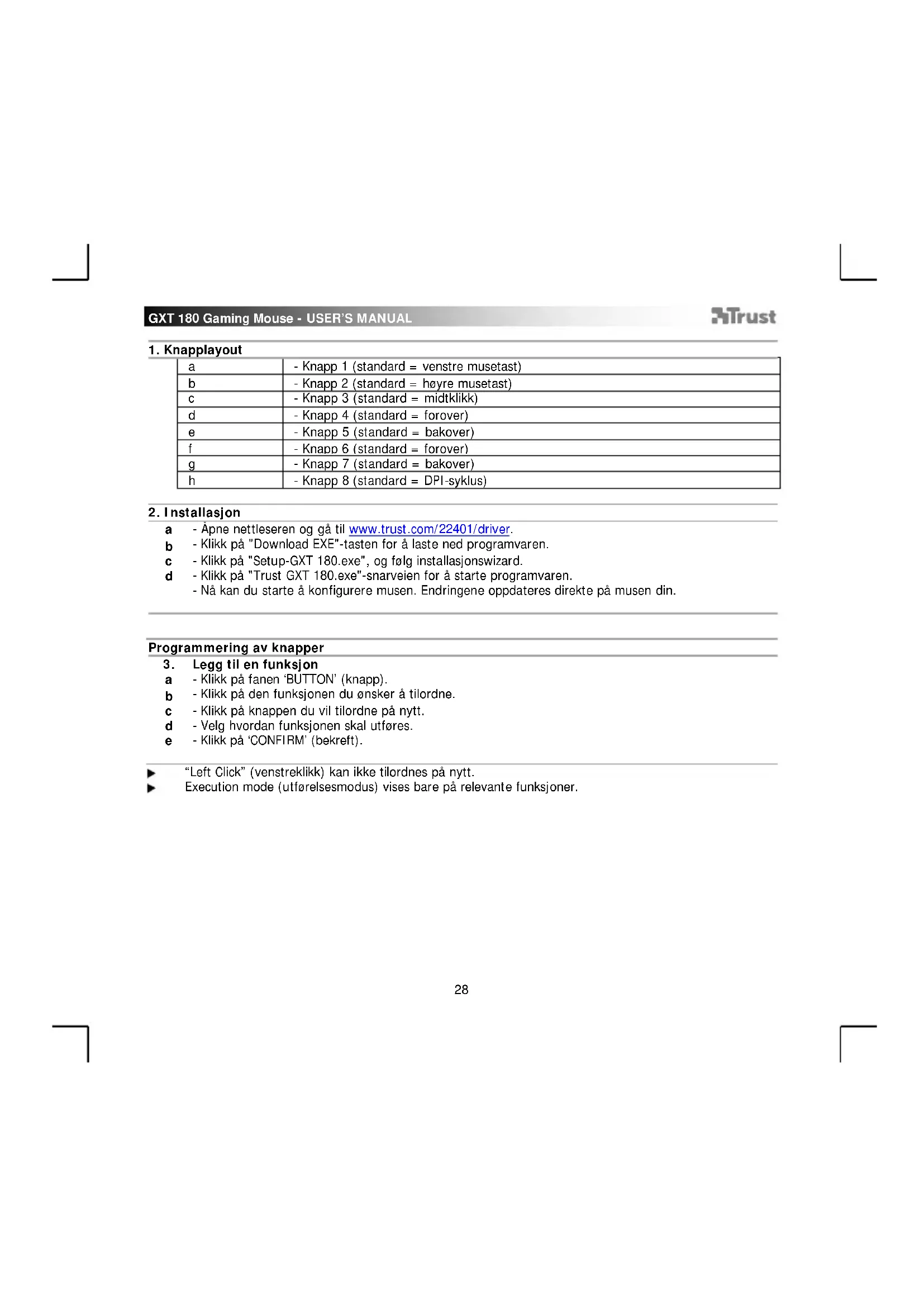 Kusan GXT 180 - Mus TRUST - Gratis bruksanvisning og manual