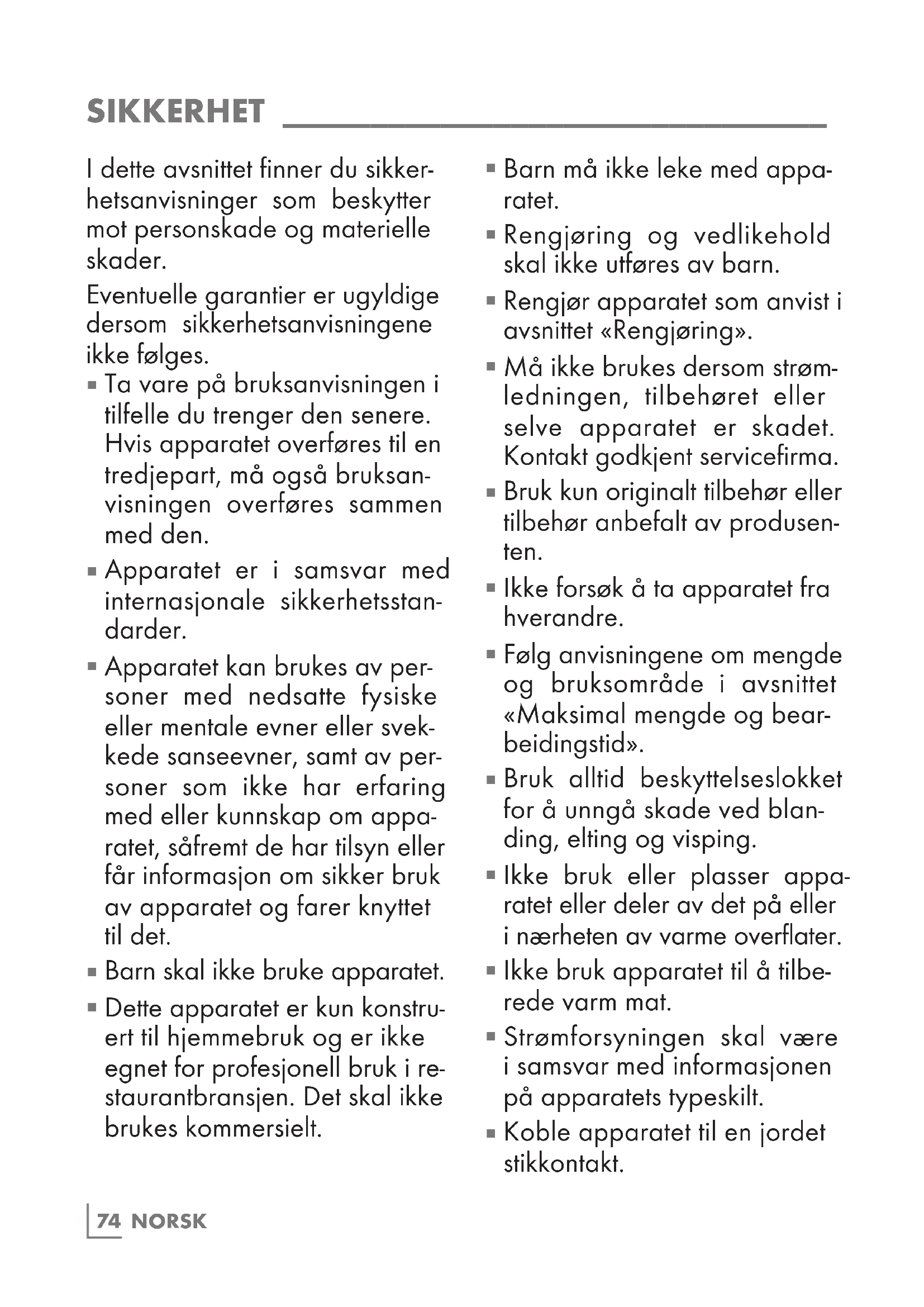 Ta støpselet ut av stikkontakten og vent til apparatet har stop- pet helt før rengjøring, demon- tering eller bytte av tilbehør.