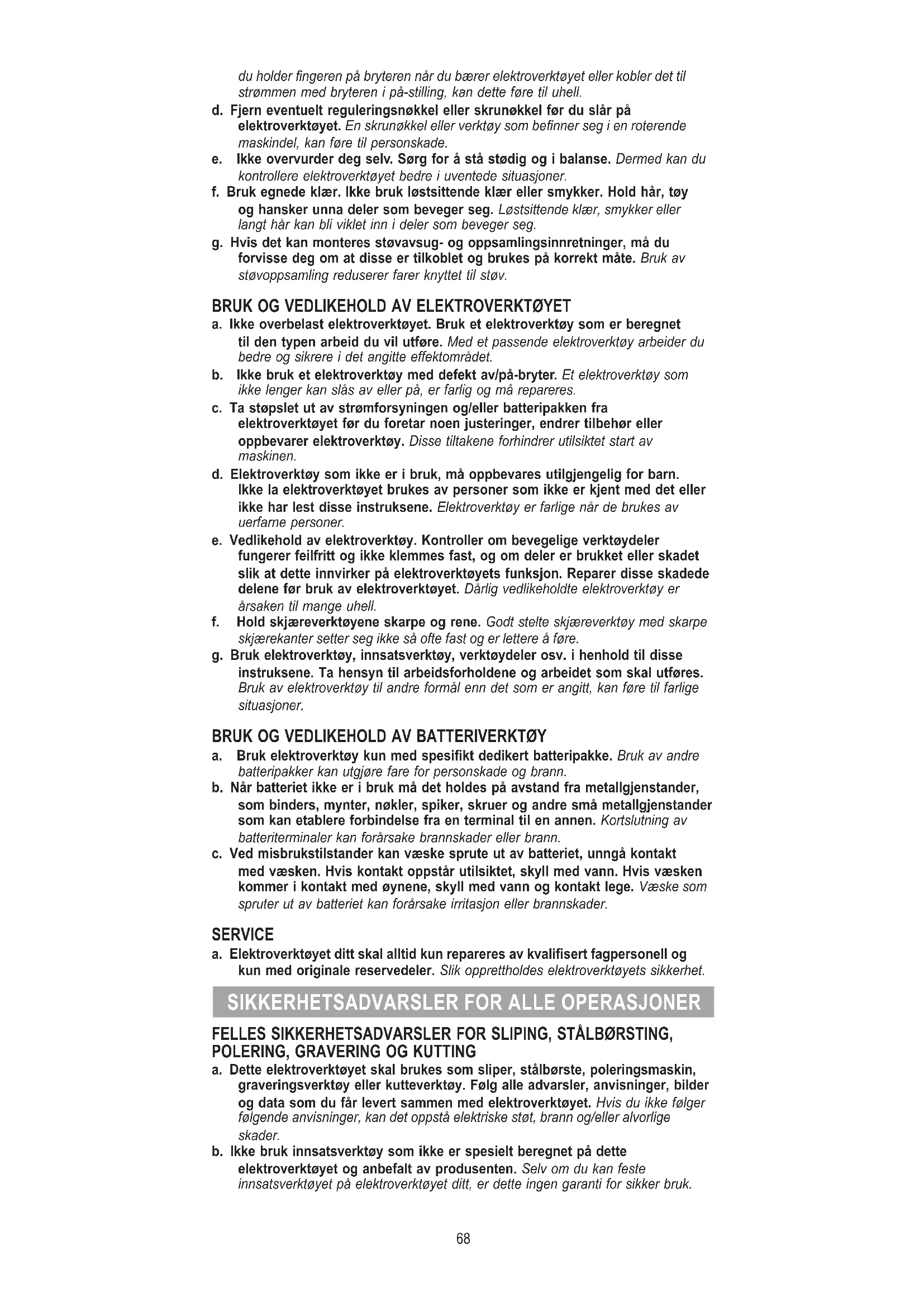 BRUK OG VEDLIKEHOLD AV ELEKTROVERKTØYET