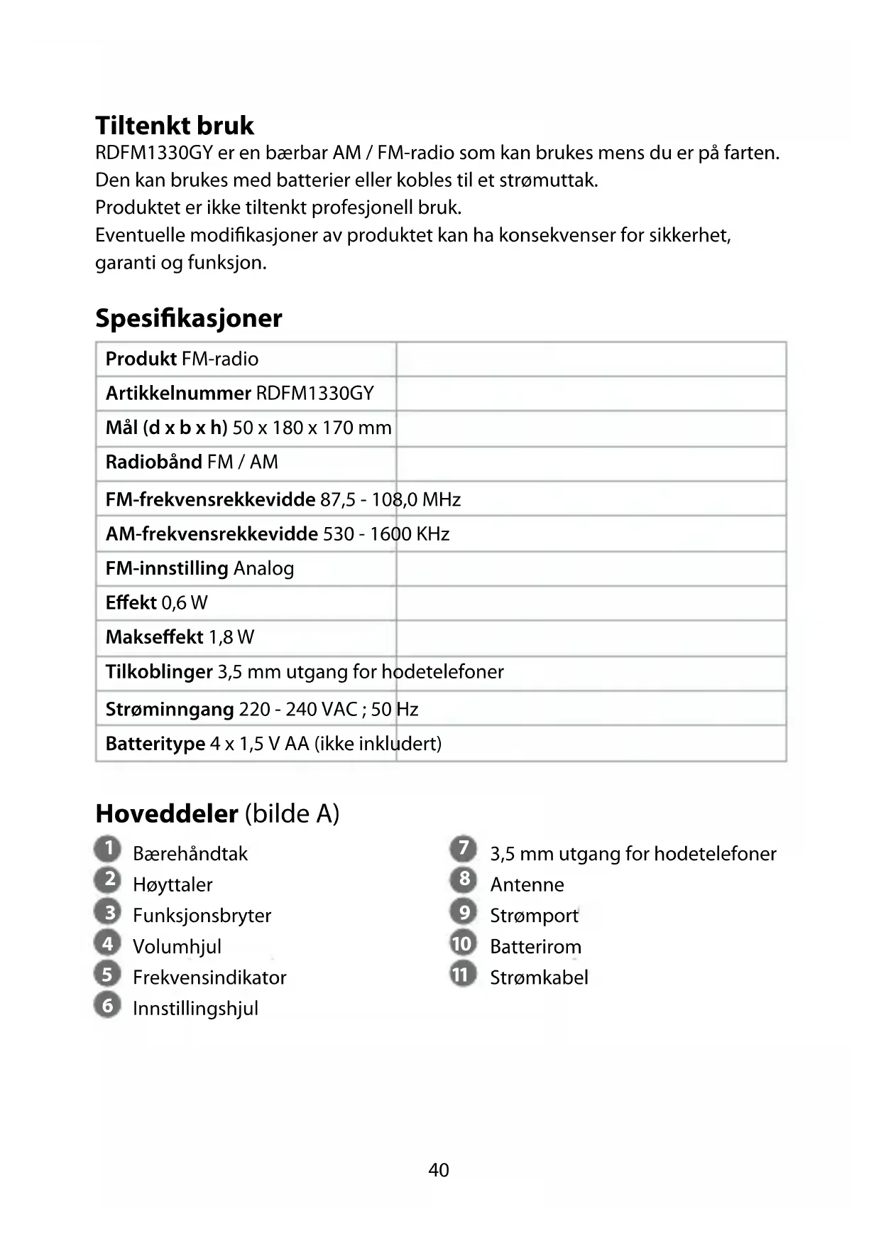 RDFM1330GY - Radio NEDIS - Gratis bruksanvisning og manual
