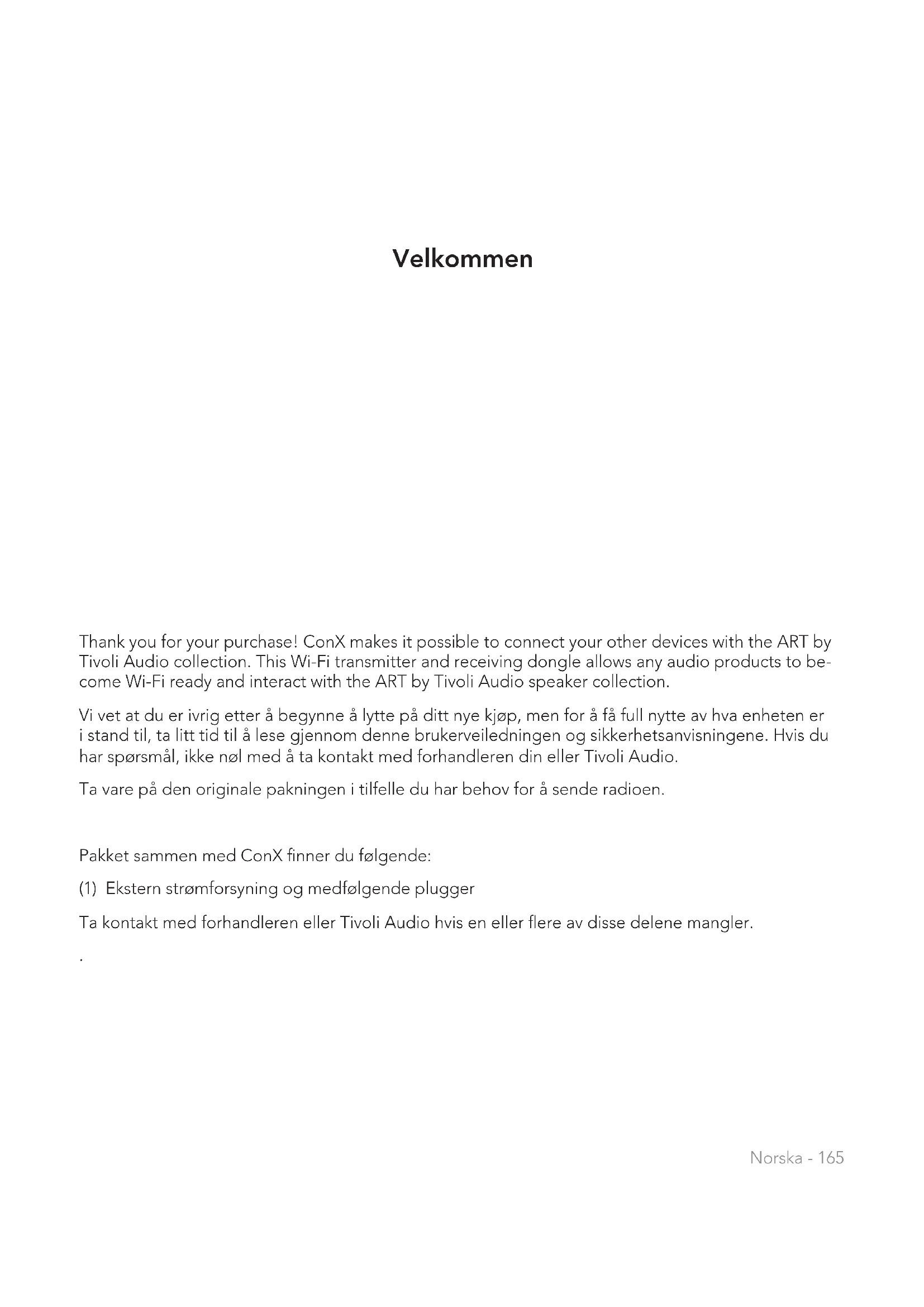 ConX - Ukategorisert TIVOLI AUDIO - Gratis bruksanvisning og manual