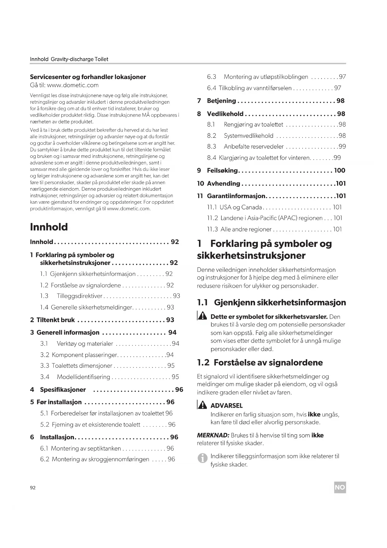 - Innhold Gravity-discharge Toilet Innhold p. 92
