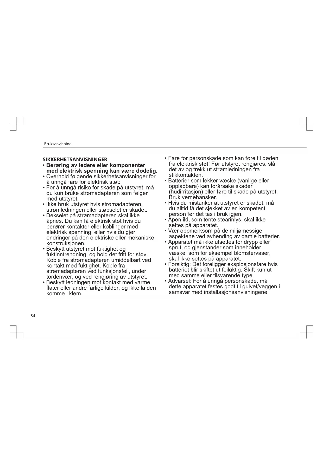 - MERK: Det er normalt at apparatet avgir en noe merkelig lukt ved førstegangs bruk. Dette vil avta etter en liten stund. NOBruksanvisning