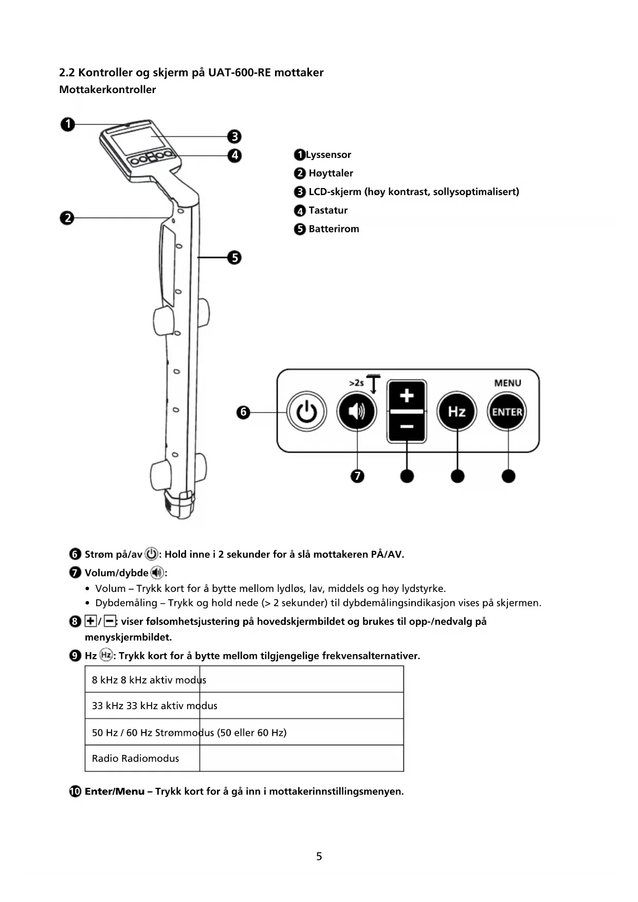 2.2 Kontroller og skjerm på UAT-600-RE mottaker