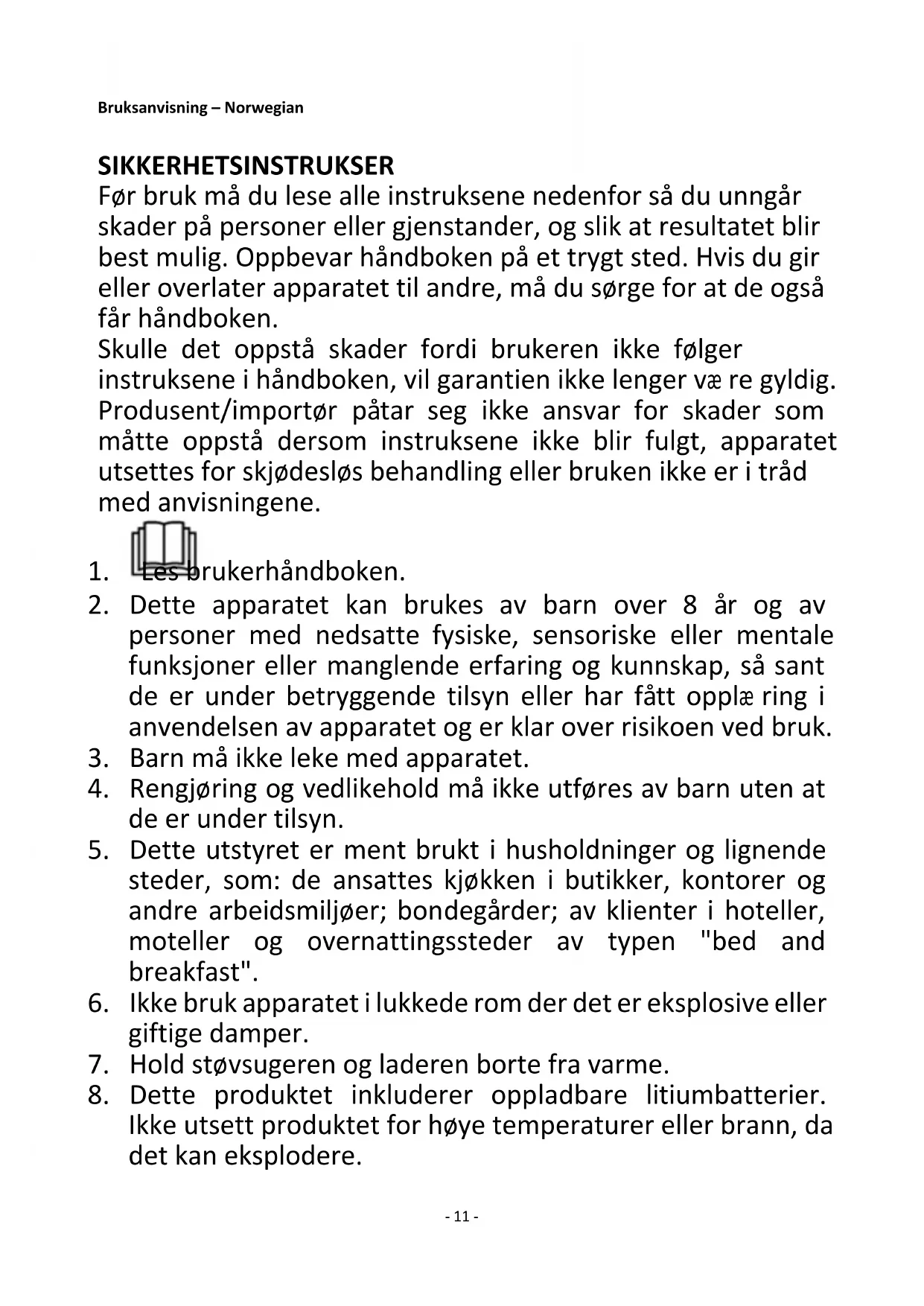 11. Ikke prøv å bruke støvsugeren til å plukke opp væ sker eller